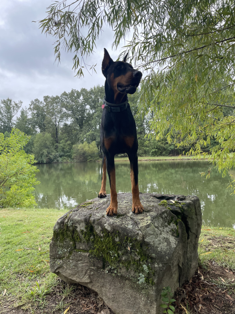 He is well rounded in lots of things, He will do anything I ask of him or try, he so well behaved and he is my heart healing dog from my last Doberman, he has an international champion (he's a pretty boy) he has excelled in anything I ask him to so with expectation of hunting rats in barn hunt. lol (rats stink) His full name is Jude remember to let her into your heart Tobiah CD RN CAA FCAT SWM SHDM CGCA TKN FITB FTI, I count myself lucky that I could get another puppy to do dog sports with
