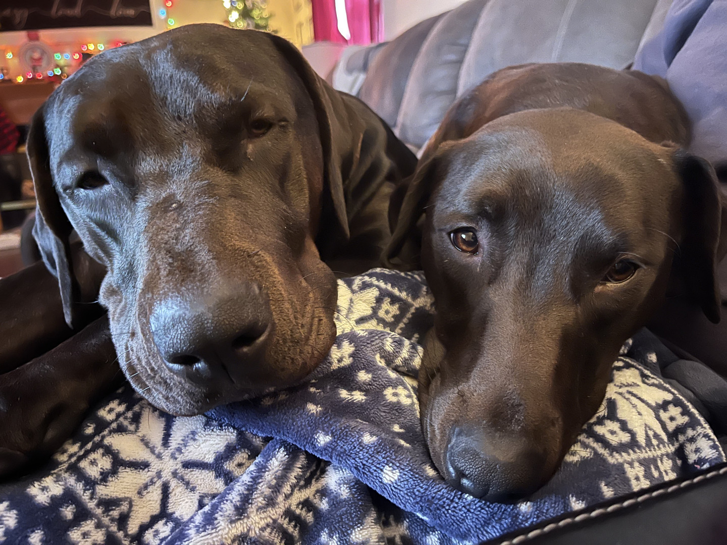 They are a mix breed of Pitbull and Doberman. They are brother and sister and their bond is inseparable. They are just a little over a year.