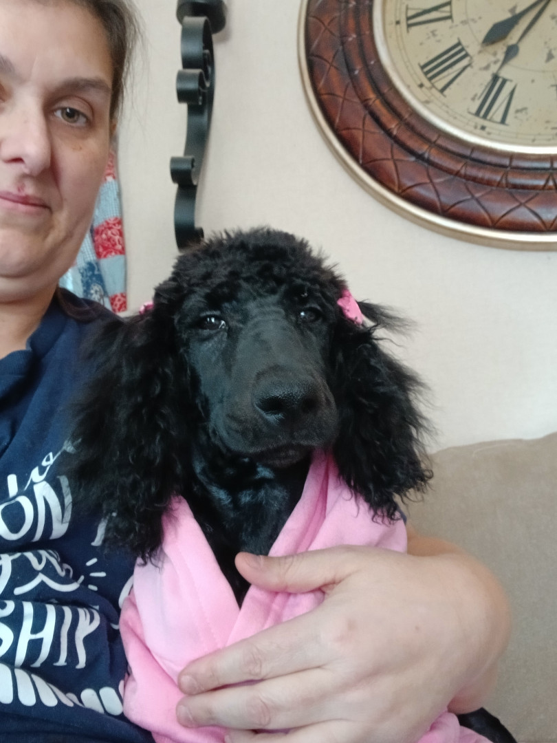 She still a puppy so she loves to play..she is the sweetest baby..she loves to give kisses..she's learned sit and stay and down
