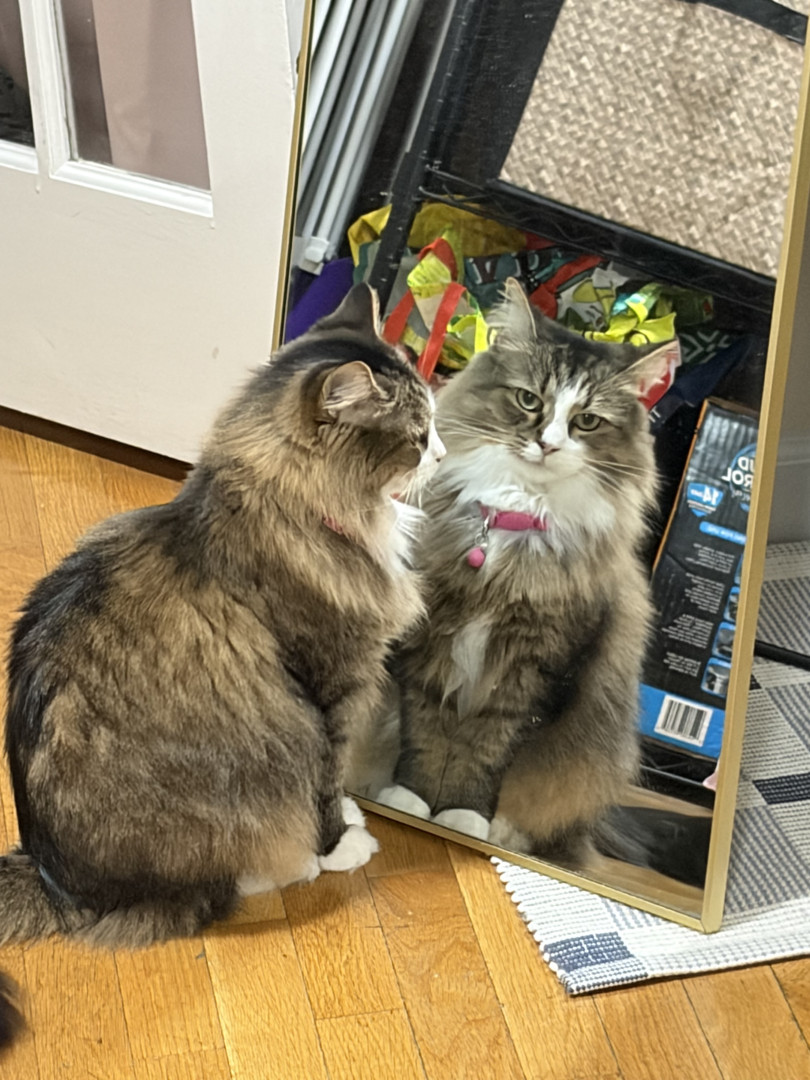 She’s the spunkiest diva alive. She loves to look at herself in the mirror and of course demands cuddles and love but only on her terms