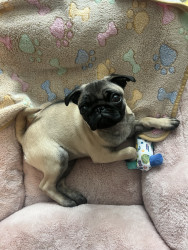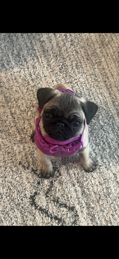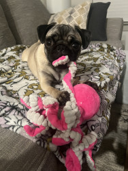 Junie is a pure-bred pug who likes to play fetch and chase her tail.