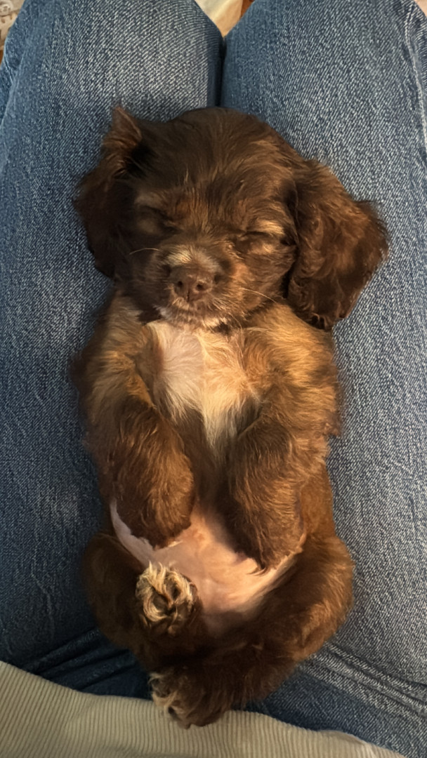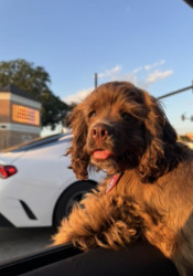 She loves playing dress up, and she thinks she’s a cat. Her best friend is a cat who has taught her how to act just like her. She’s also a people dog, she loves people’s and loves going into public to meet new friends.
