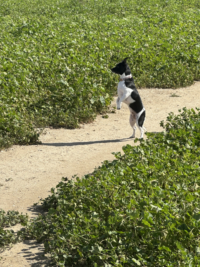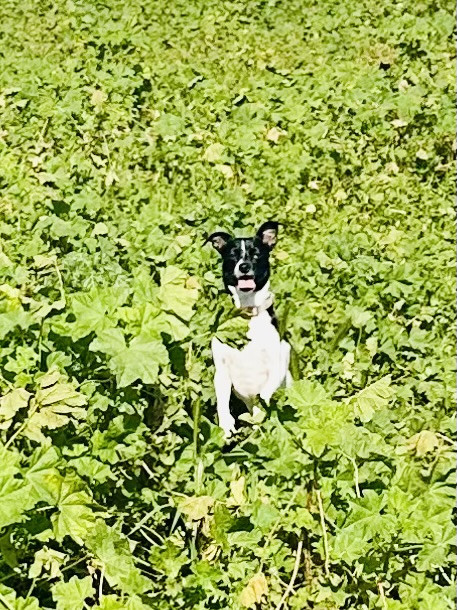 Juno sometimes stands up like a meerkat and barks at her reflection in the mirror, convinced she’s found another dog who wants to play.