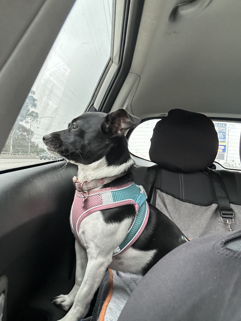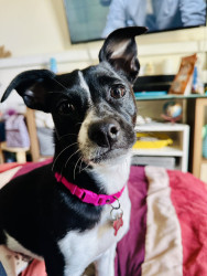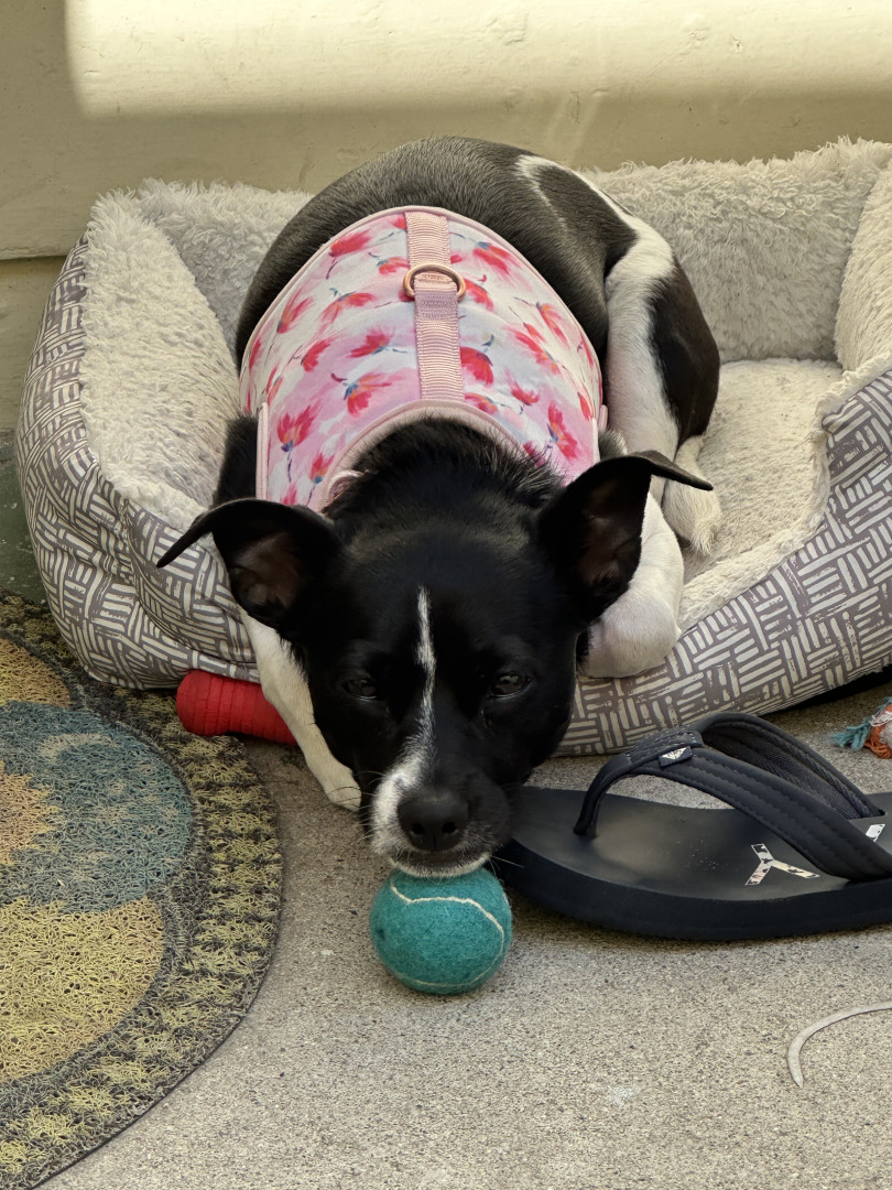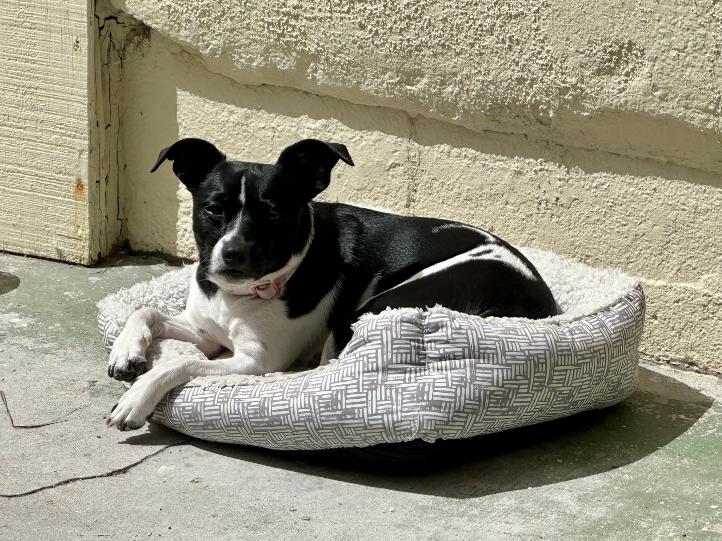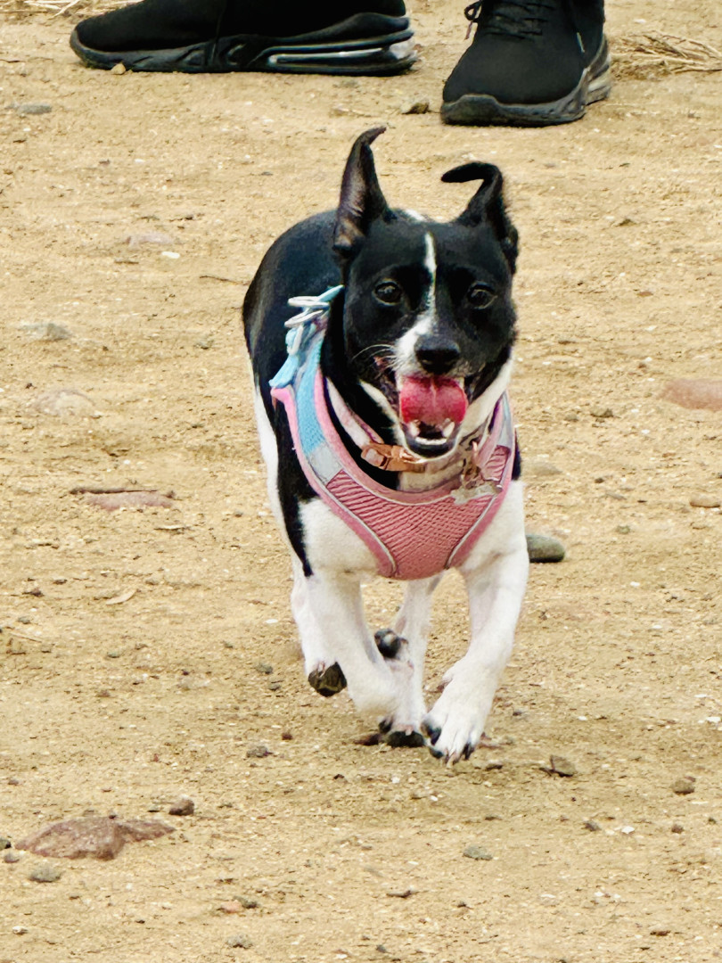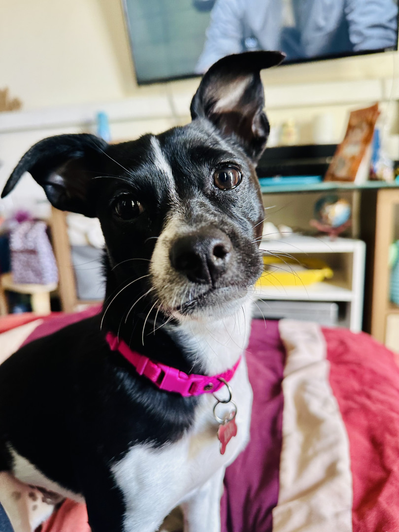 Juno is the sweetest pup, full of kisses and happy wiggles with her people, playful and curious, and gently reserved with strangers.