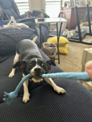 Learn MoreJuno loves tug-o-war more than anything and is never happier than when she’s found the perfect stick to carry, chew, or proudly show off.