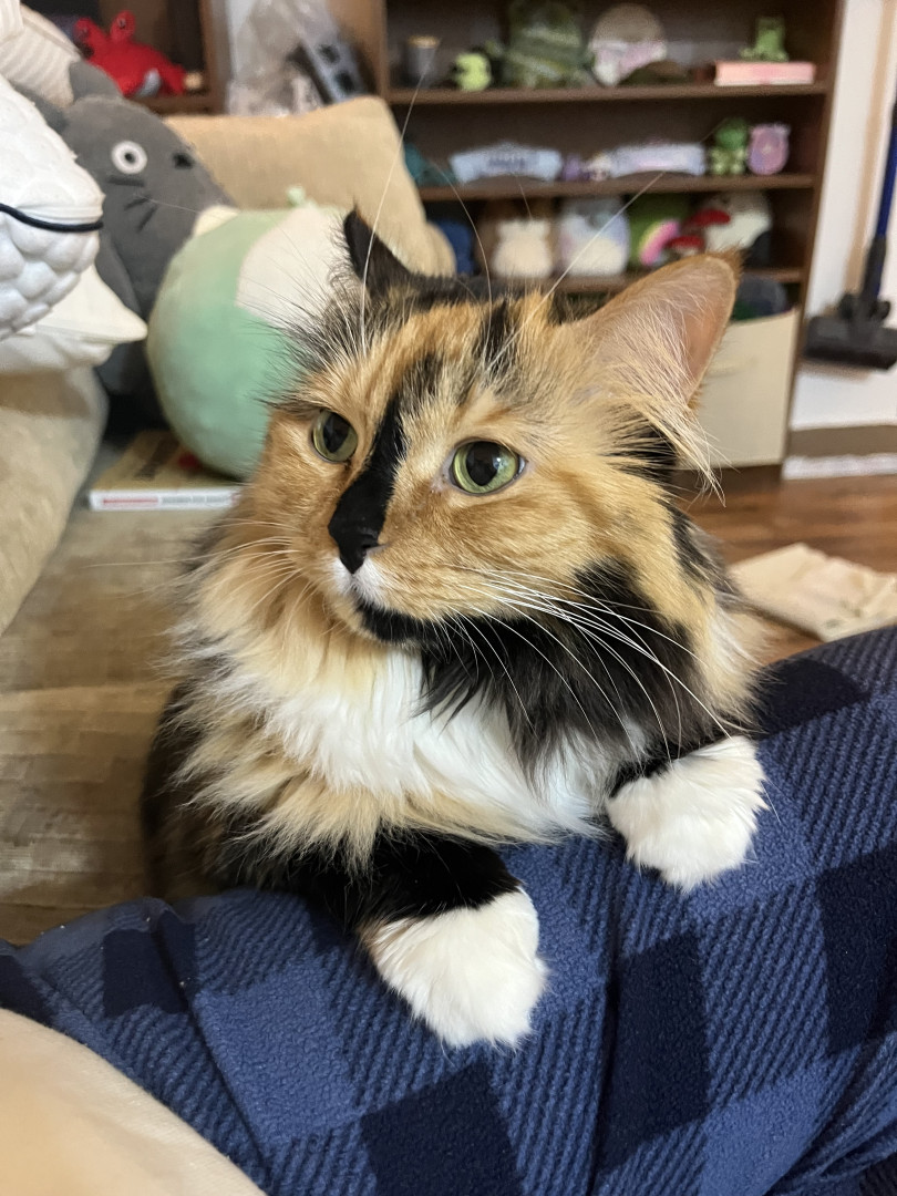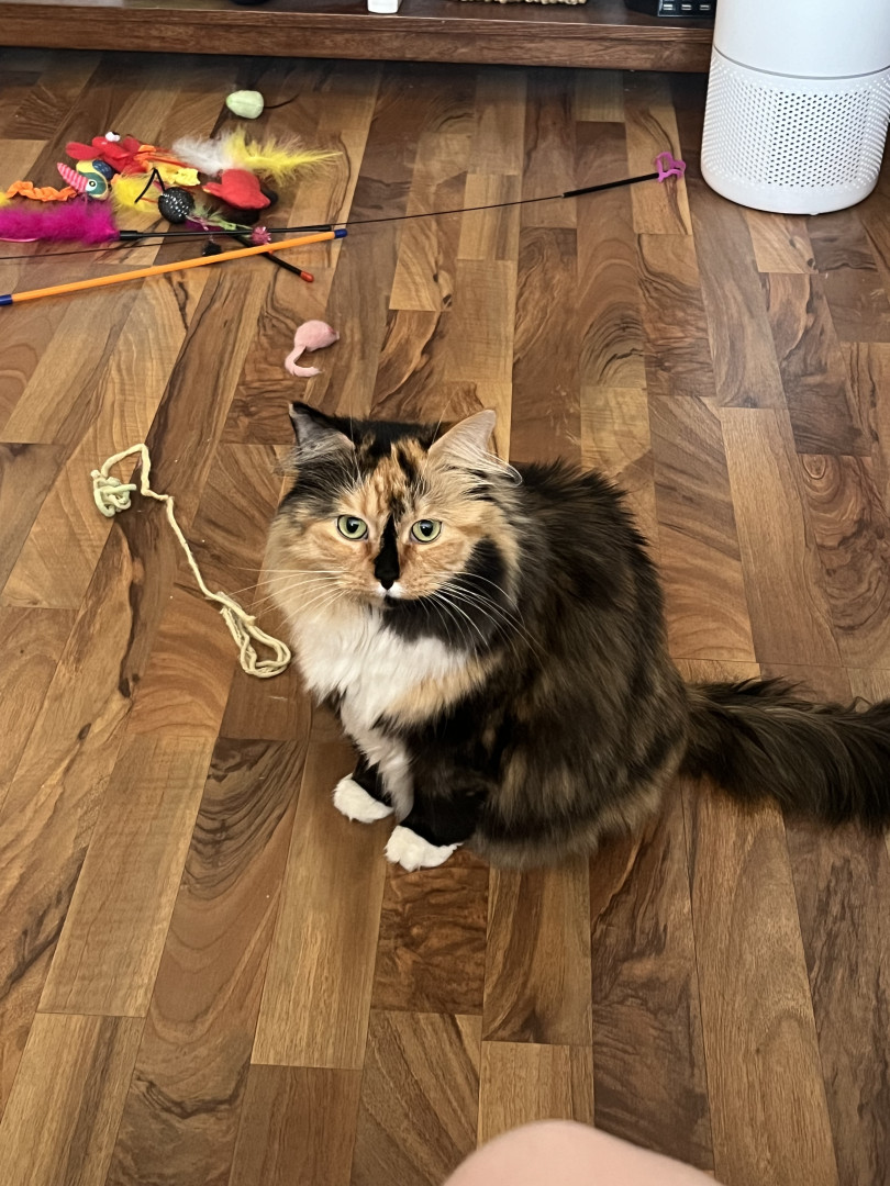 Juno loves everyone back just as much as they love her! She’s adorable and super fluffy and gets really goofy when she gets the zoomies. She’s the best cat I could ever ask for!