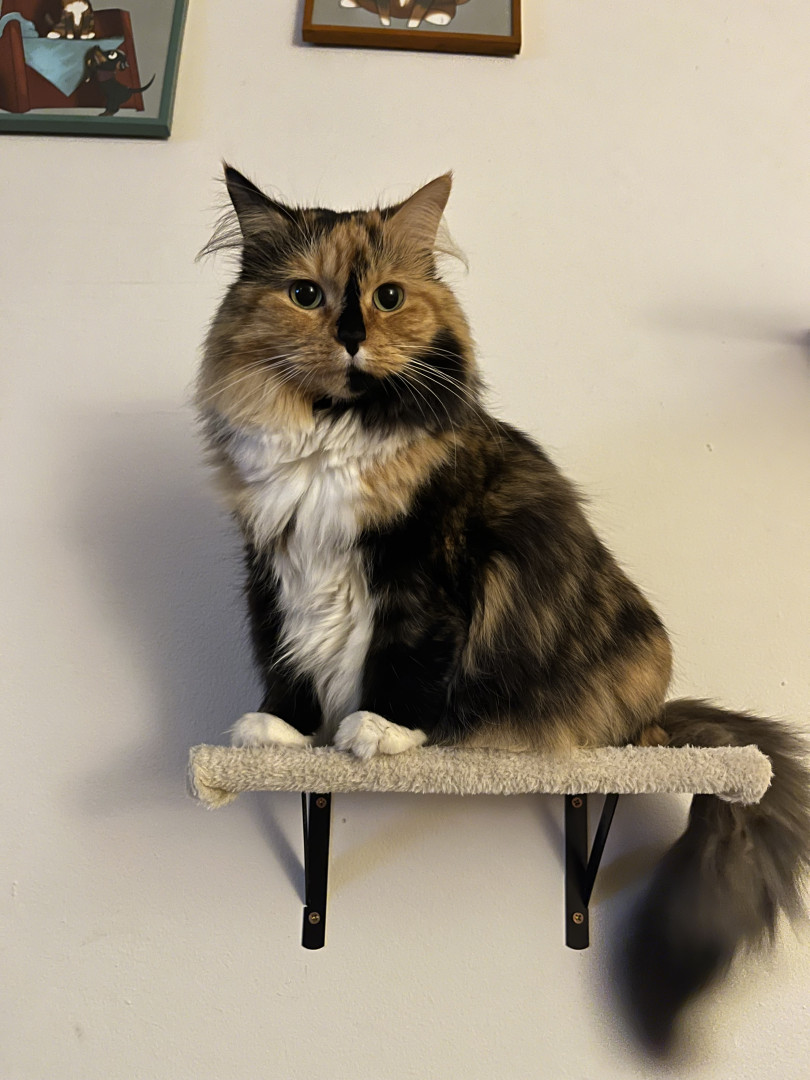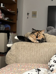 Juno is the sweetest, fluffiest calico cat you’ll ever meet! She loves pets and playtime with everyone around her.