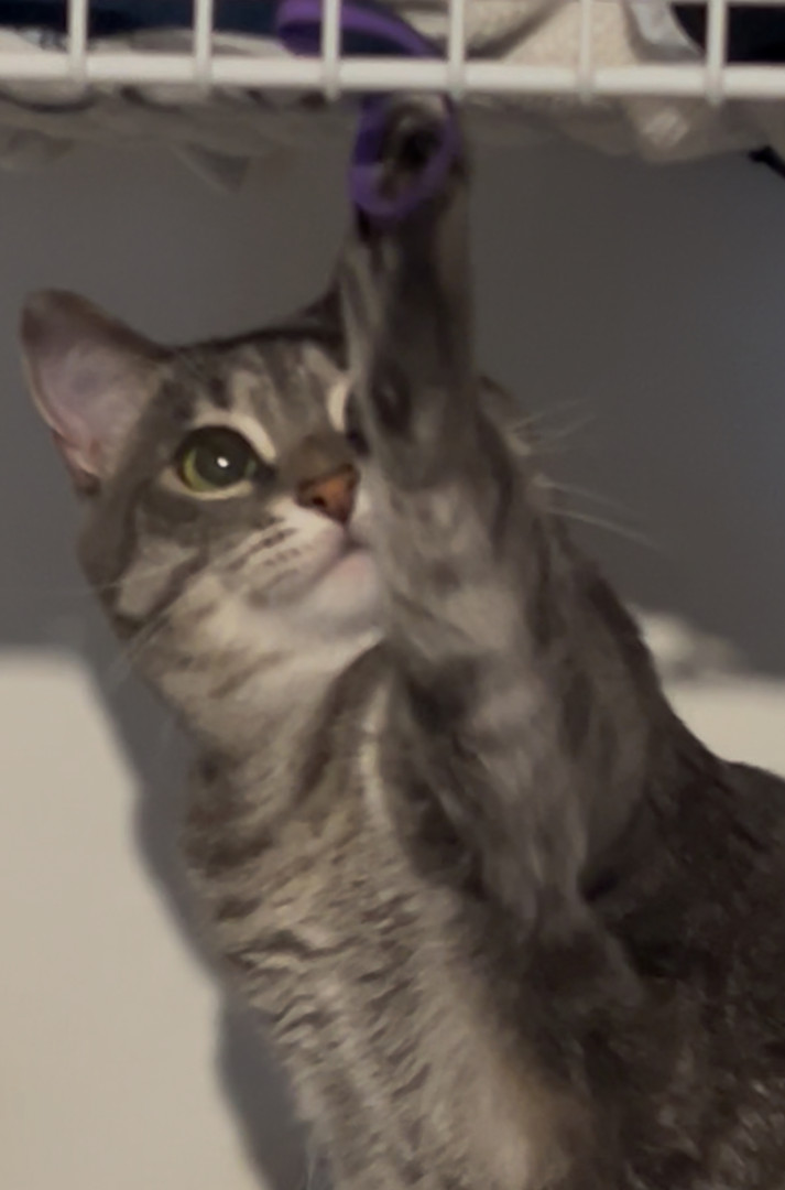 Juno is a tiny furball with a playful but mischievous attitude! She loves to play, cuddle, and watch birds! She is a purrrrrfect companion!