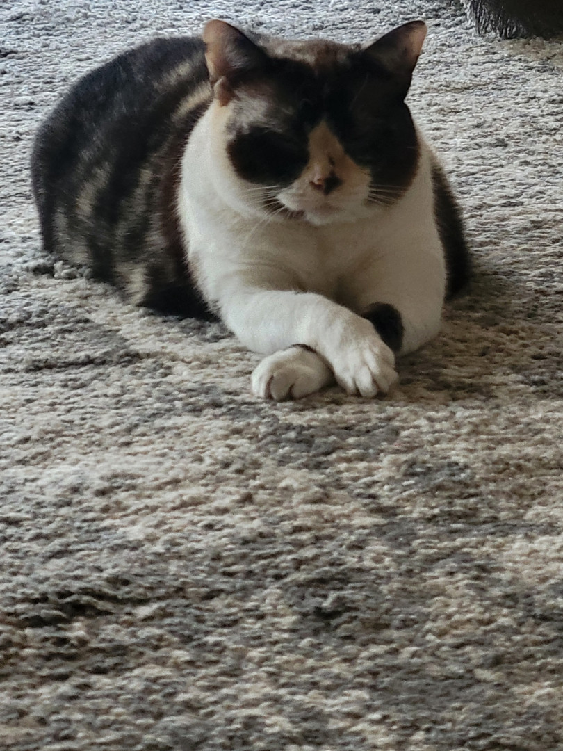 She is the heart and soul of our family with her sass loving loyal nature. shes full of joy early in the mornings wanting tummy rubs and our nights full of zommies and cute snores she like to lay her chunkiness right next to you when she's in a comfy mood. Her strong character comes out when she's frustrated with being in her space. She's not aggressive unless you take her favorite toy away. She's always waiting at the door to greet us. After her meals she loves to flop on the spot.