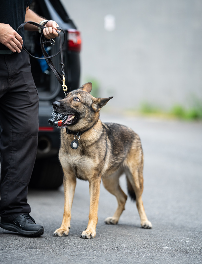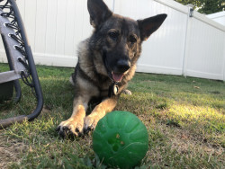 Becca is a bomb dog at Newark airport. She loves to play with her spiked balls in her spare time and eat plenty of healthy snacks!