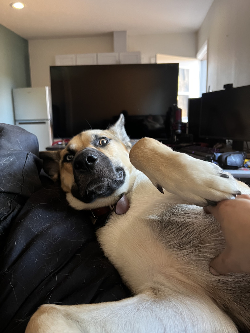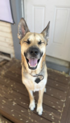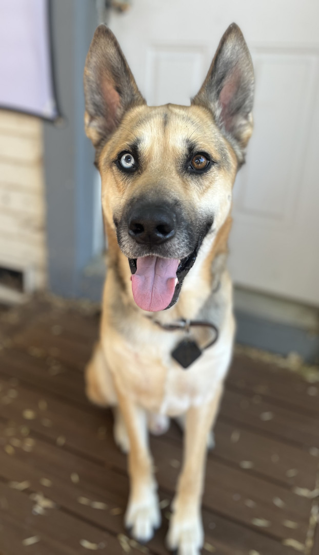 5 year old German Shepard husky mix, Male and his name is Kai
