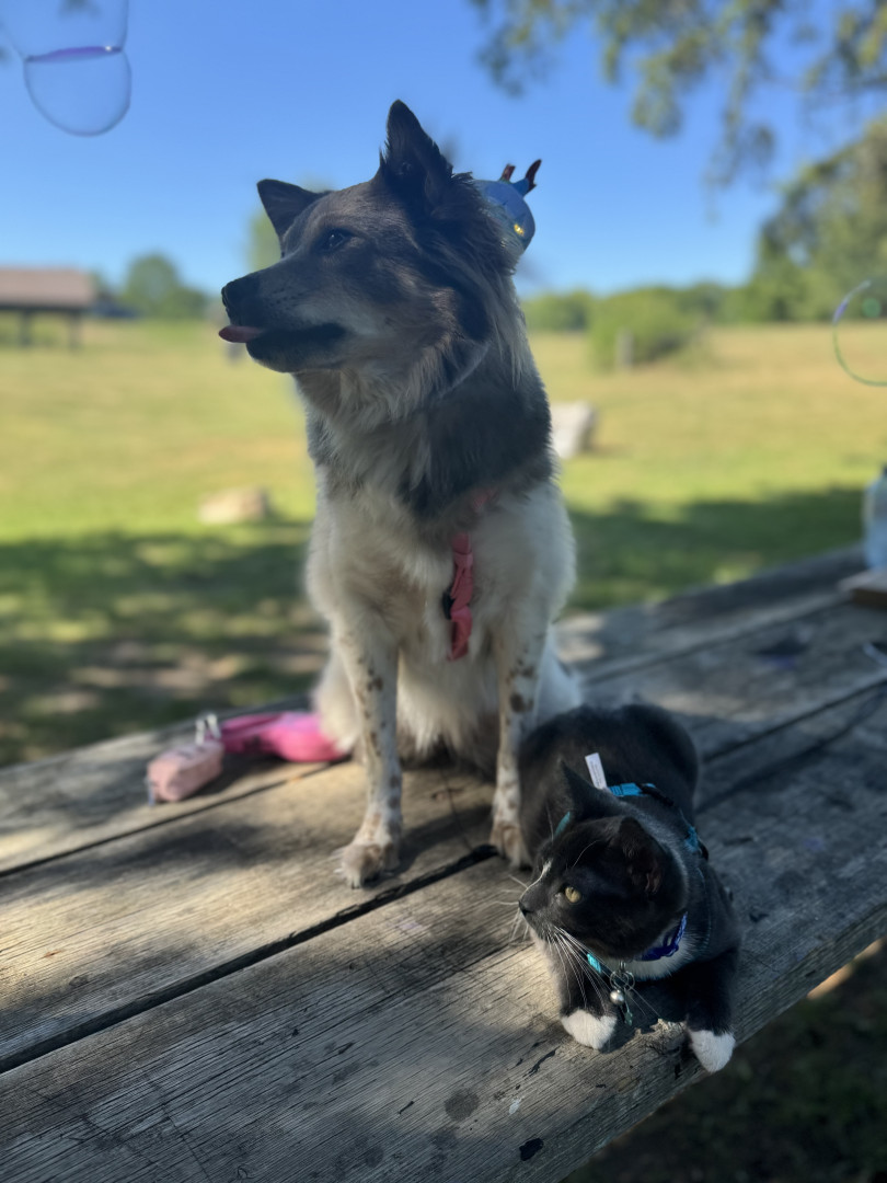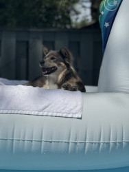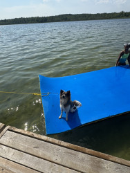 Kaia is very smart and affectionate. She learns new tricks very quickly. She also has a unique look most people think she is mixed with fox. She’s also very quiet when we go places, I can bring her every where with me she’s very calm and patient. She can also speak on command or when she feels vocal almost like a husky. Sometimes we have conversations back and forth 😂. Kaia loves all animals, people and children. She loves being exposed to new experiences, very brave girl.