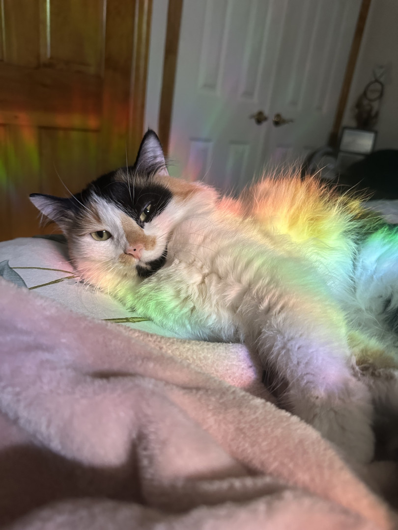 Because Kali has the kind of heart America could use more of. She’s a total mush, a world-class cuddler who knows exactly when you need comfort and never holds back on the love. She has a way of instantly making every day brighter, whether it’s with her gentle presence, her silly little habits, or just curling up beside you like she’s protecting your peace. She’s sweet without trying, comforting without asking, and reminds you that the simplest love is often the best kind. She’s just the best!