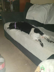 She is very mischievous and likes playing tricks. When her Dad gets home and puts his hat, keys, and wallet down on the side of the bed, she likes to toss his stuff in the floor and mess with him! She's got a very funny sense of humor. She will wallow around next to one of us until we start wiggling her booty around and she pretends she's all ferocious and growly but that tail wagging gives her playfulness away.