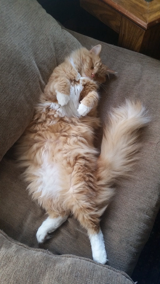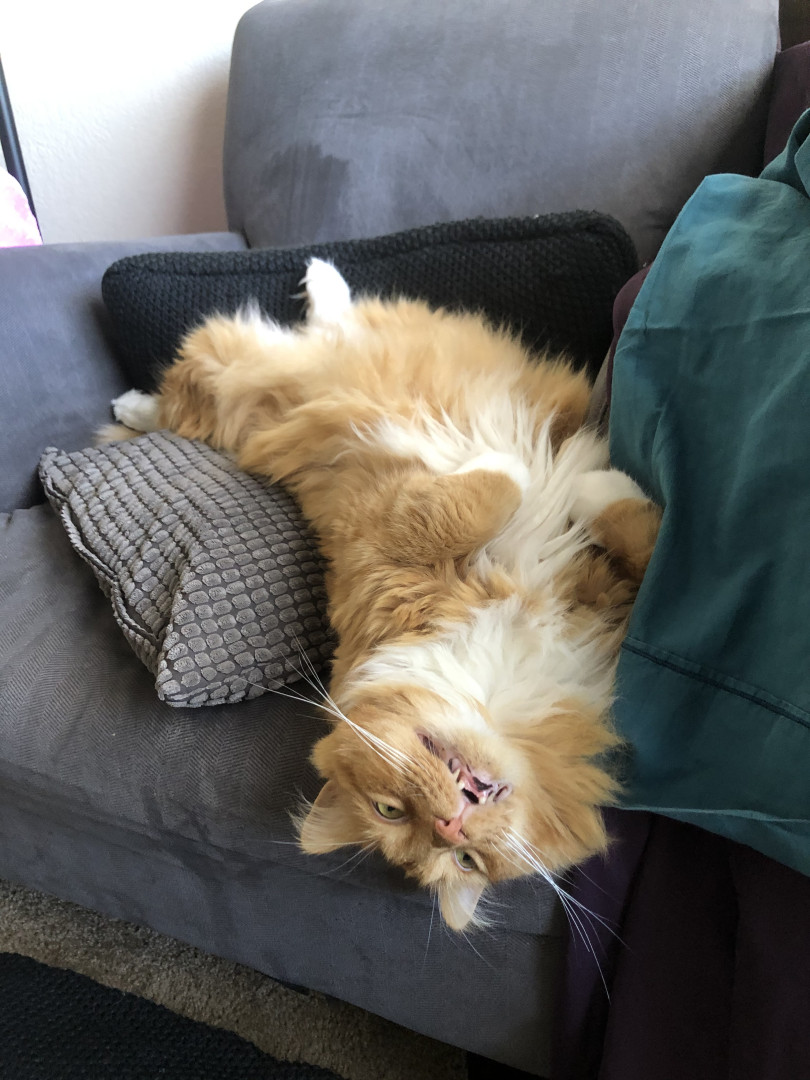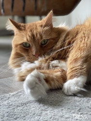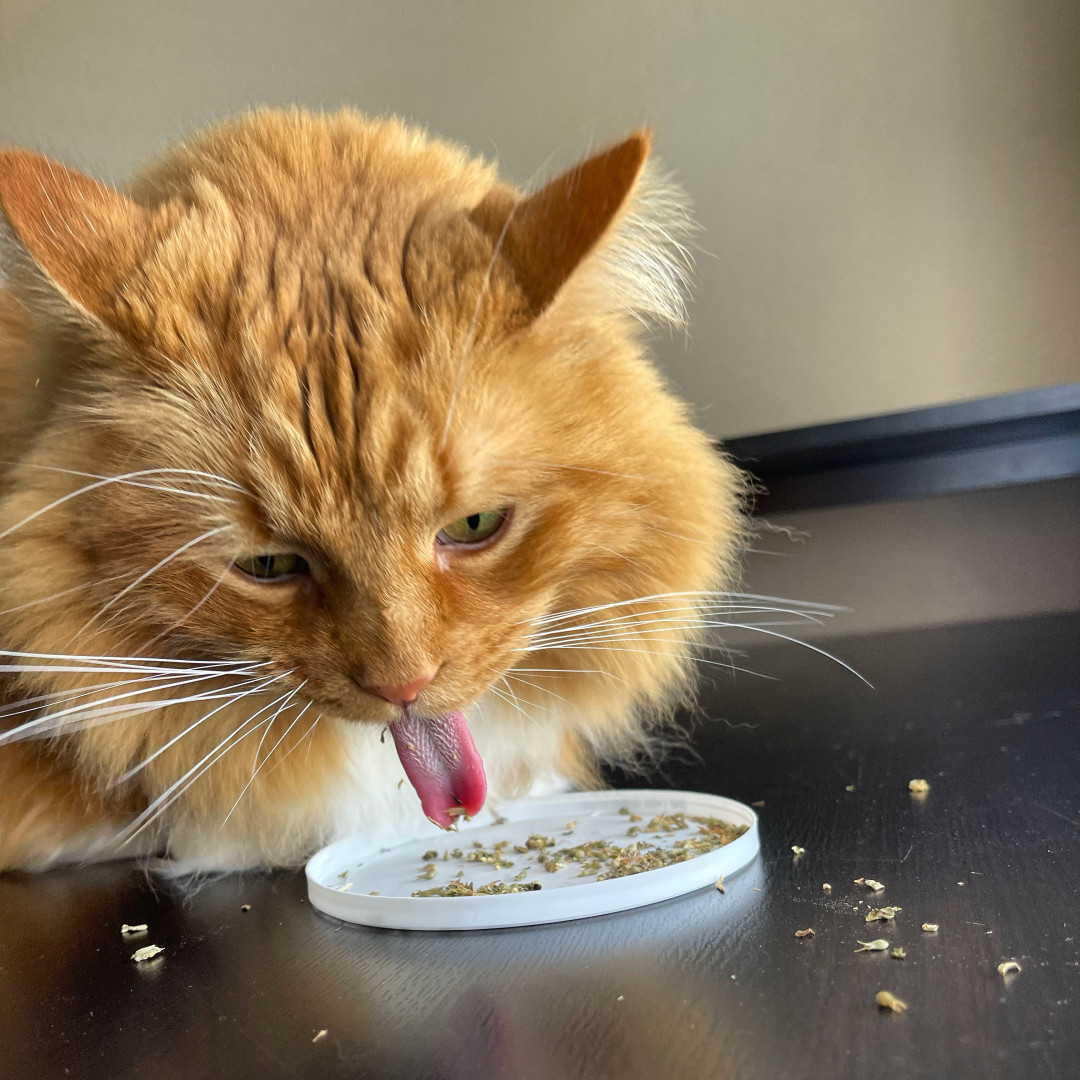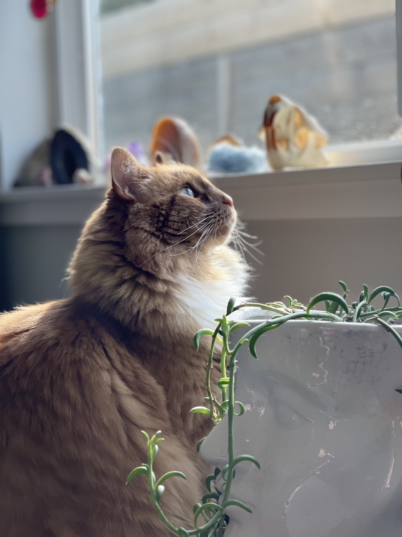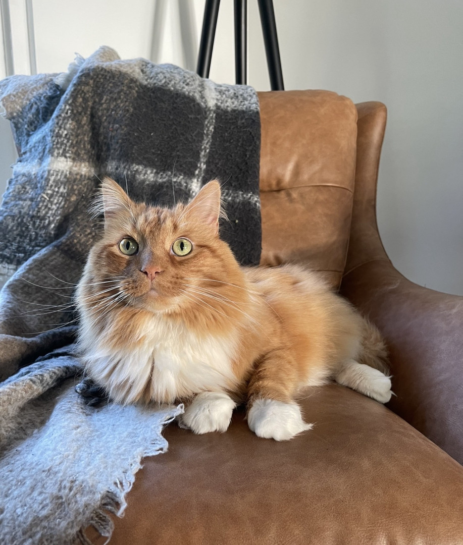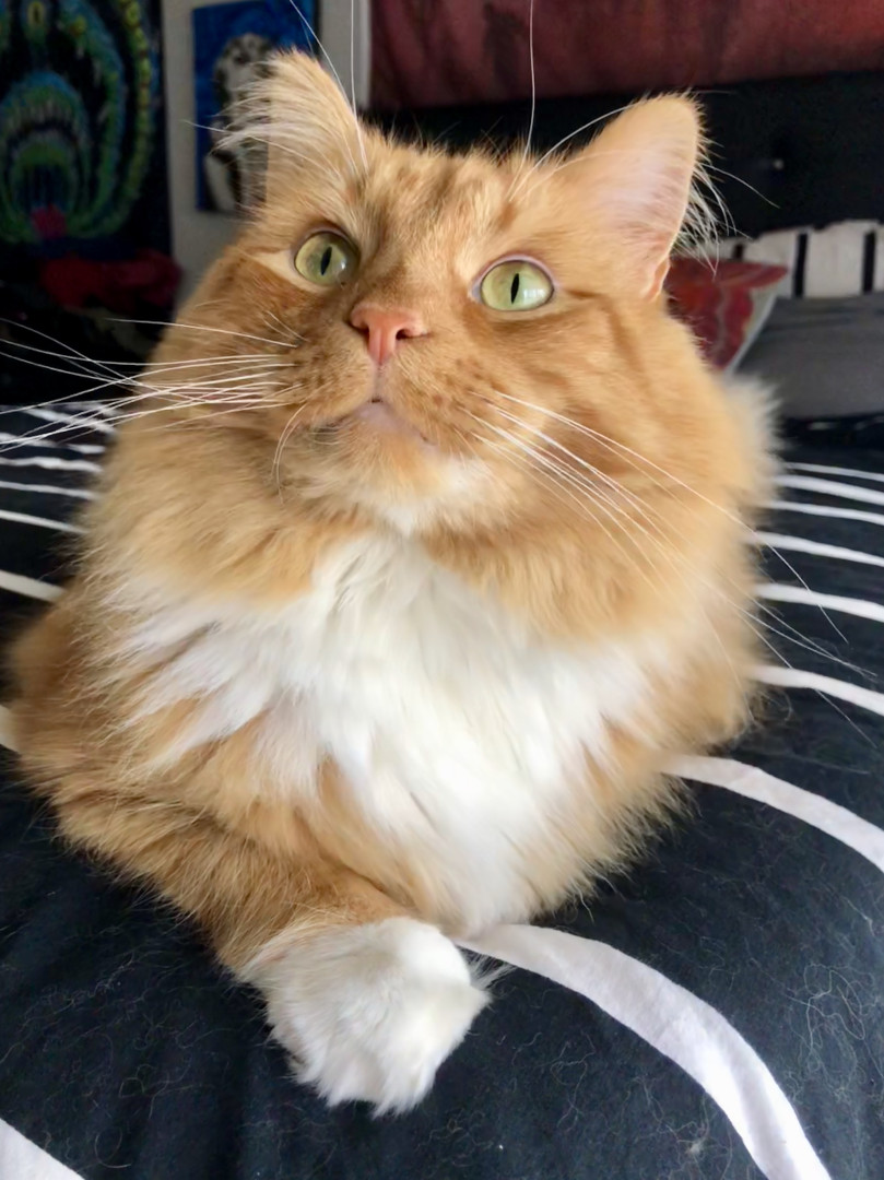 He’s the chillest pet ever and loves life to the fullest! With his open heart, he greets everyone at the door with a friendly rub and a raspy old meow—spreading joy to everyone he sees 🥰