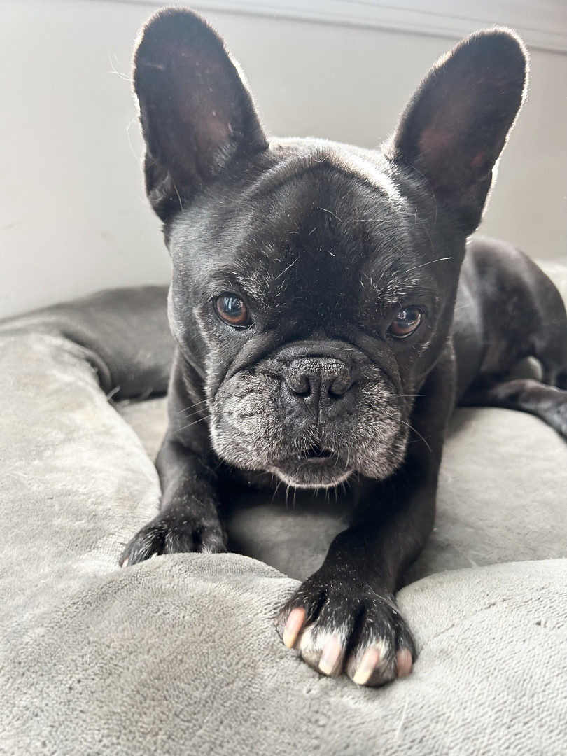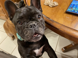 He should be America’s favorite dog because he is so cute and wants to play with everyone! He will also whine and talk when he wants something and is not getting it.