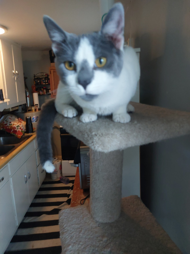 this is kat. the craziest kitty in the world.. he is into everything and doesn't miss nothing...