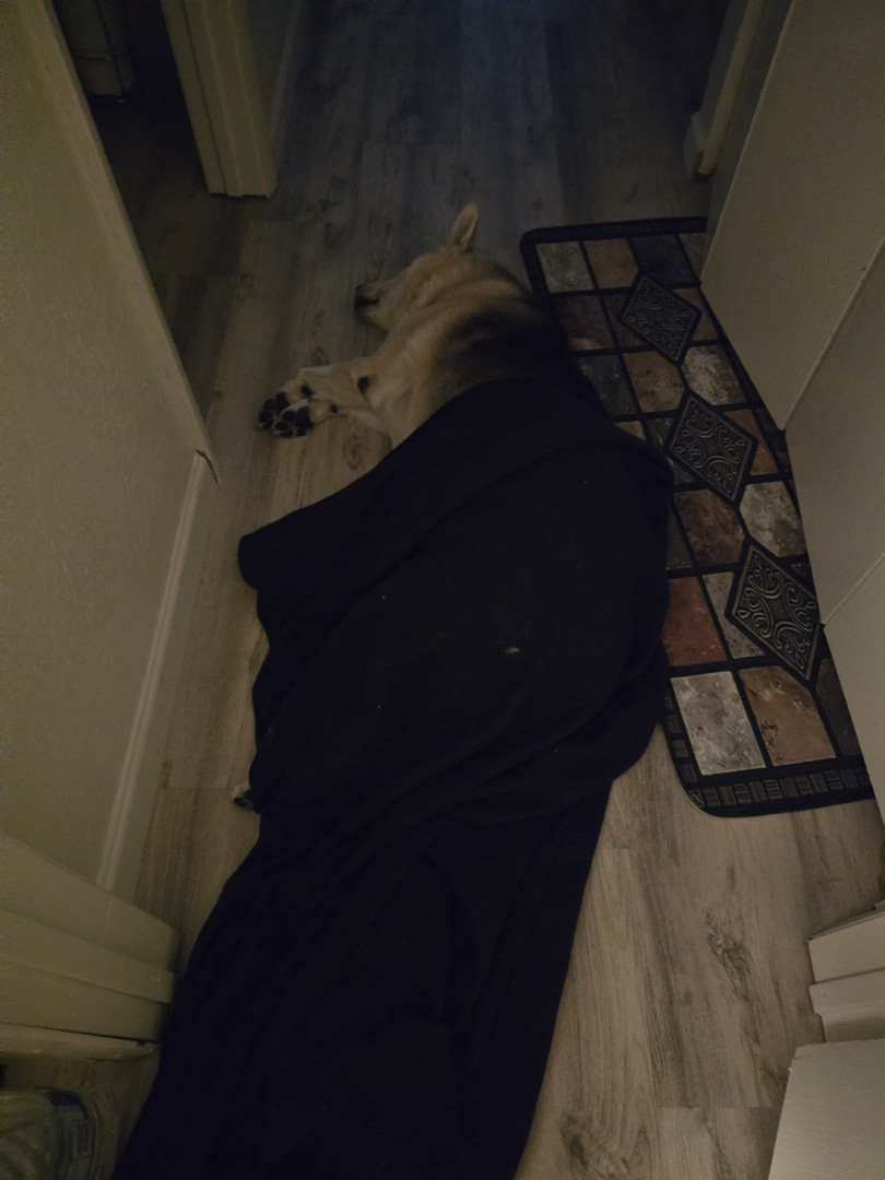 Katie loves to rest anywhere in the house, but especially loves her blanket to keep her warm and cozy.