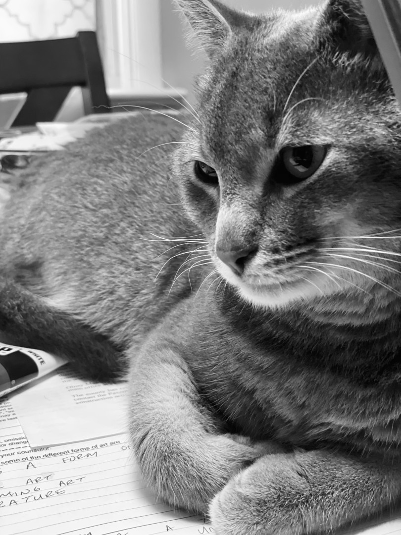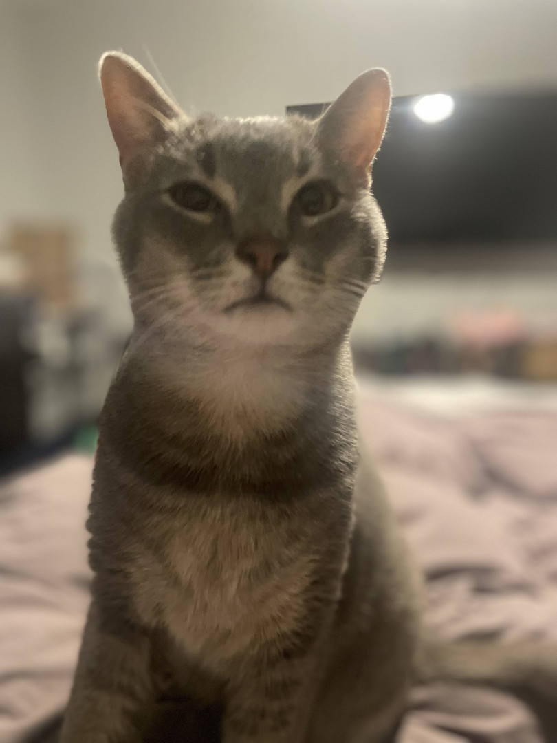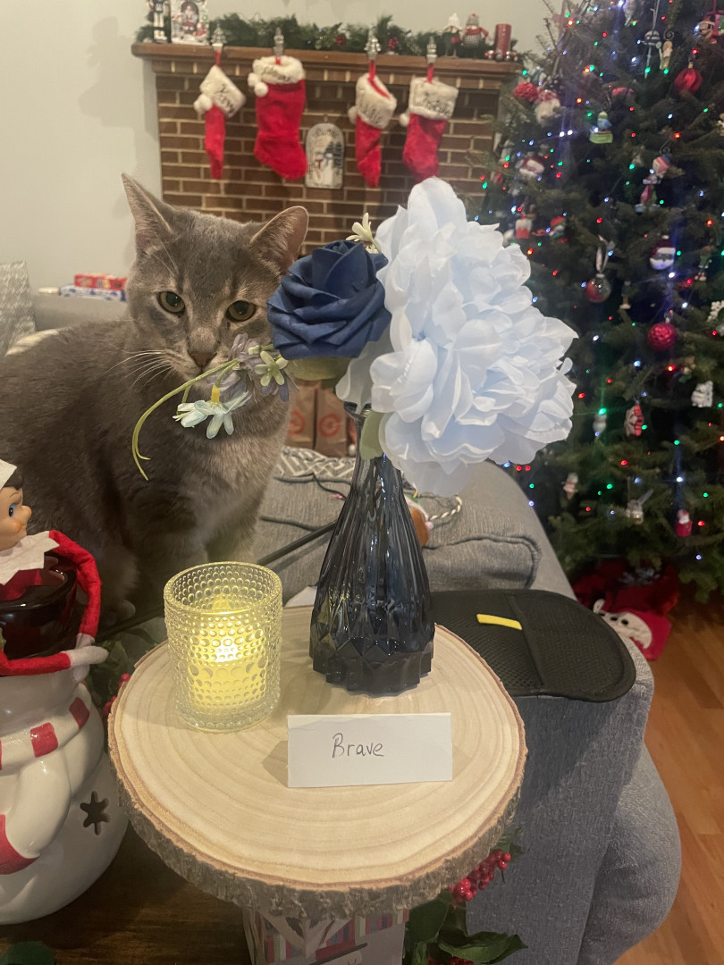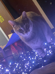 Keanu is two years old and was found as a newborn and we adopted him. He’s named after the movie Keanu. He’s loving and rambunctious!