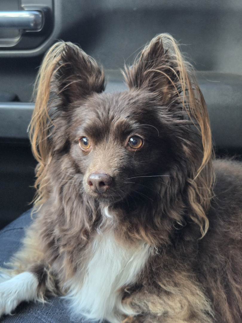Keiki (key-eke) is an energetic Pomeranian Papillon mix. Rescued from the streets of Arizona eating pizza under a tree.