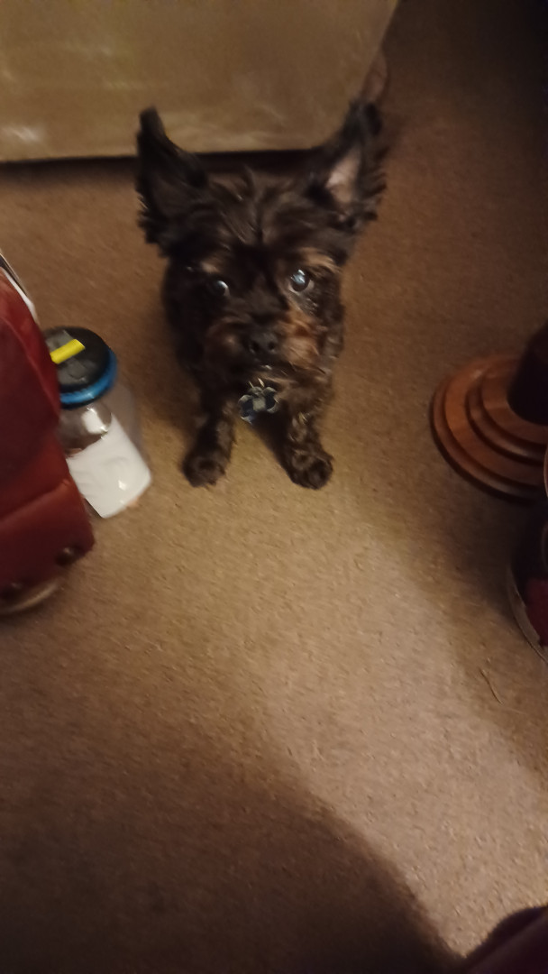She's just the best. Kenzi is so cute and funny and happy. She loves attention from all and she loves treats! A woman who lived in the same building as I do passed away and had Kenzi (not the name at the time). After being passed to a couple of people someone asked me if I wanted her and I said "Oh yes of course " and we have been together since. I don't know what she went through in the past but she is much better off now than she was. She cowers at so many things and I treat her as gently a