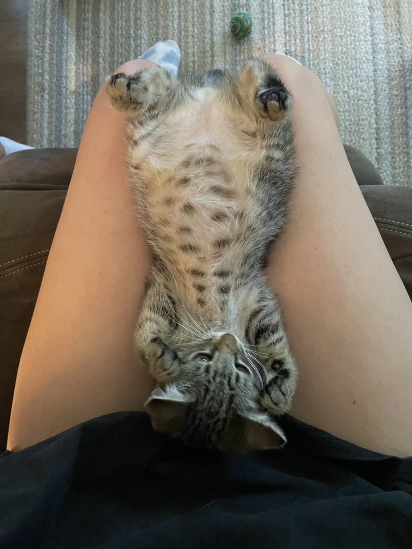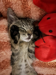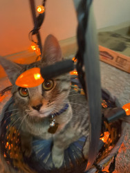kewpie is my best friend!!!! she is a very frisky kitty that loves to play and cuddle. her favorite toys are her stuffed lobsters 🦞