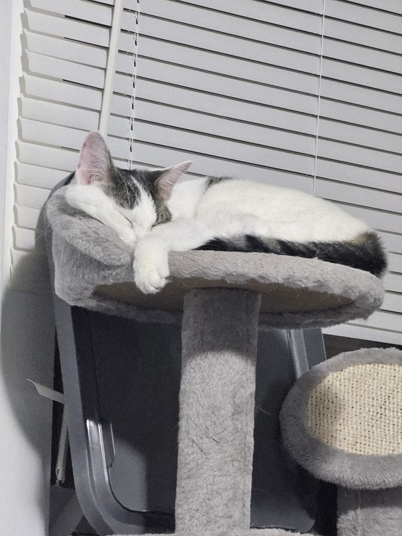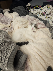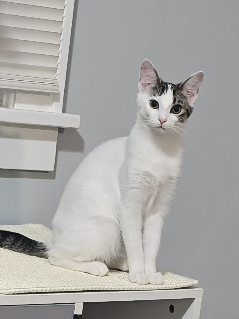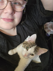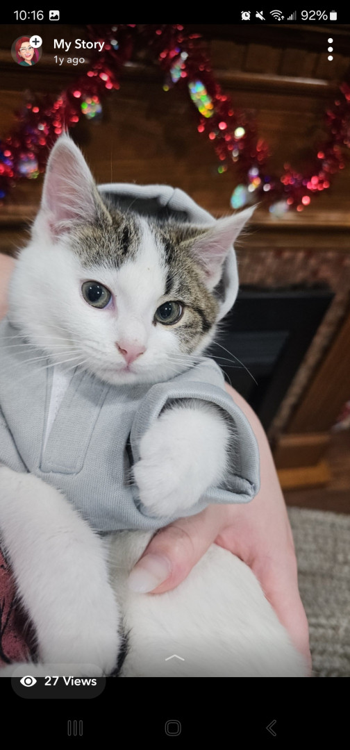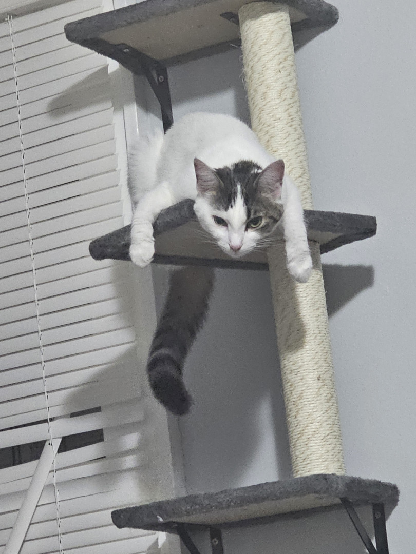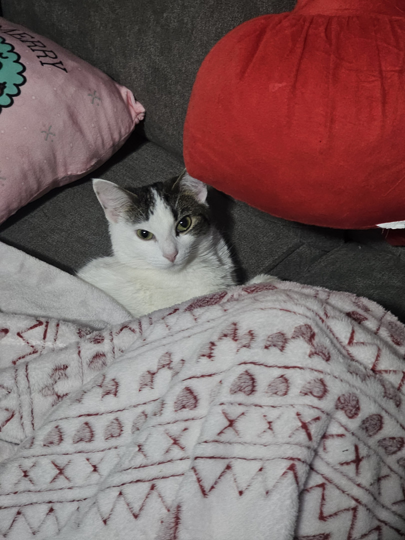 Khloe should be America's favorite because she has so many amazing qualities! She is so sweet and cuddly. She loves laying underneath the blankets to cuddle. She also is very playful! She loves playing with her siblings and running up and down the cat trees and all around the house. She loves grabbing my hand and giving playful love bites. She also is so adorable! I call her the "Prettiest kitty at the party" all the time. She is just an all around amazing cat!