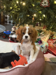 She is so smart & unique black spots on her paw pads & at only 4 months old she can preform many tricks.