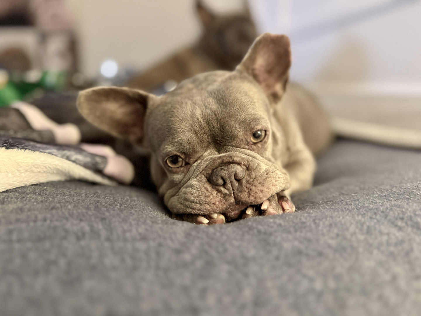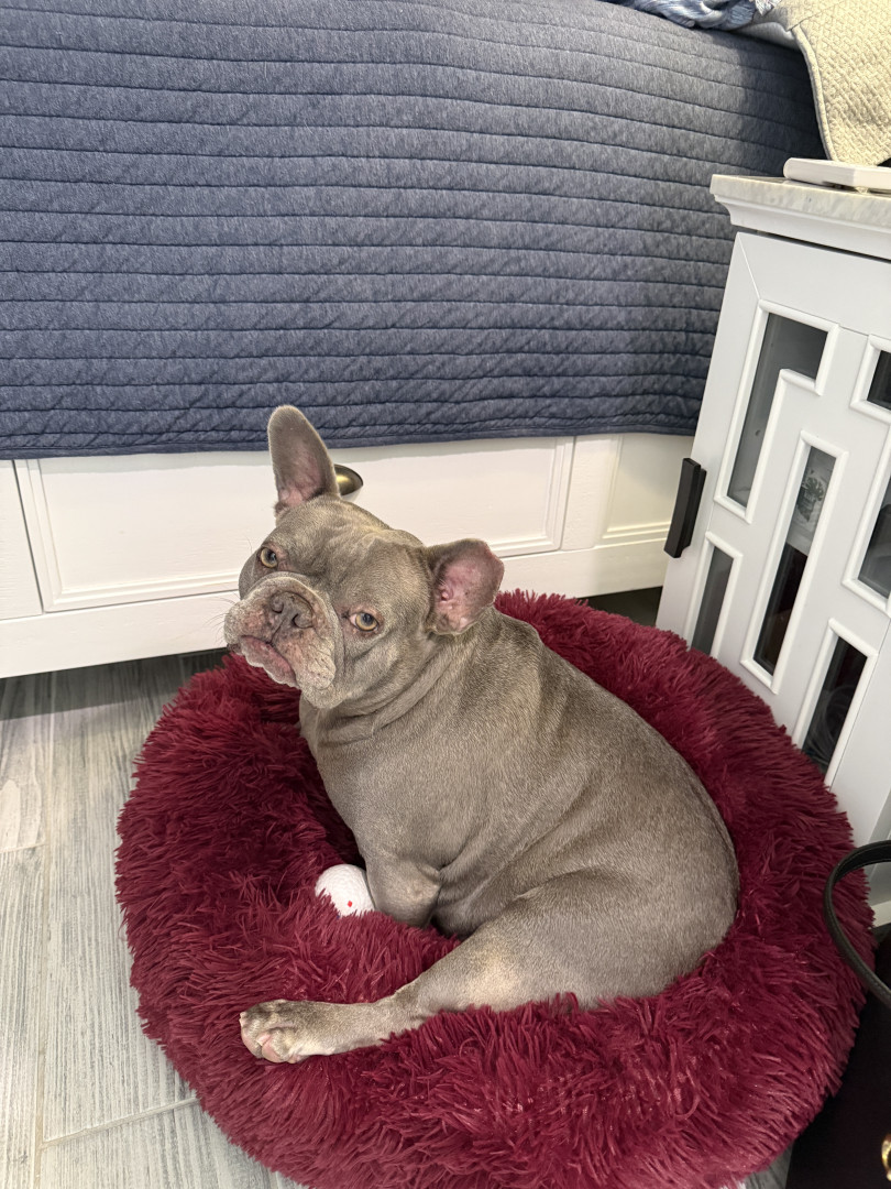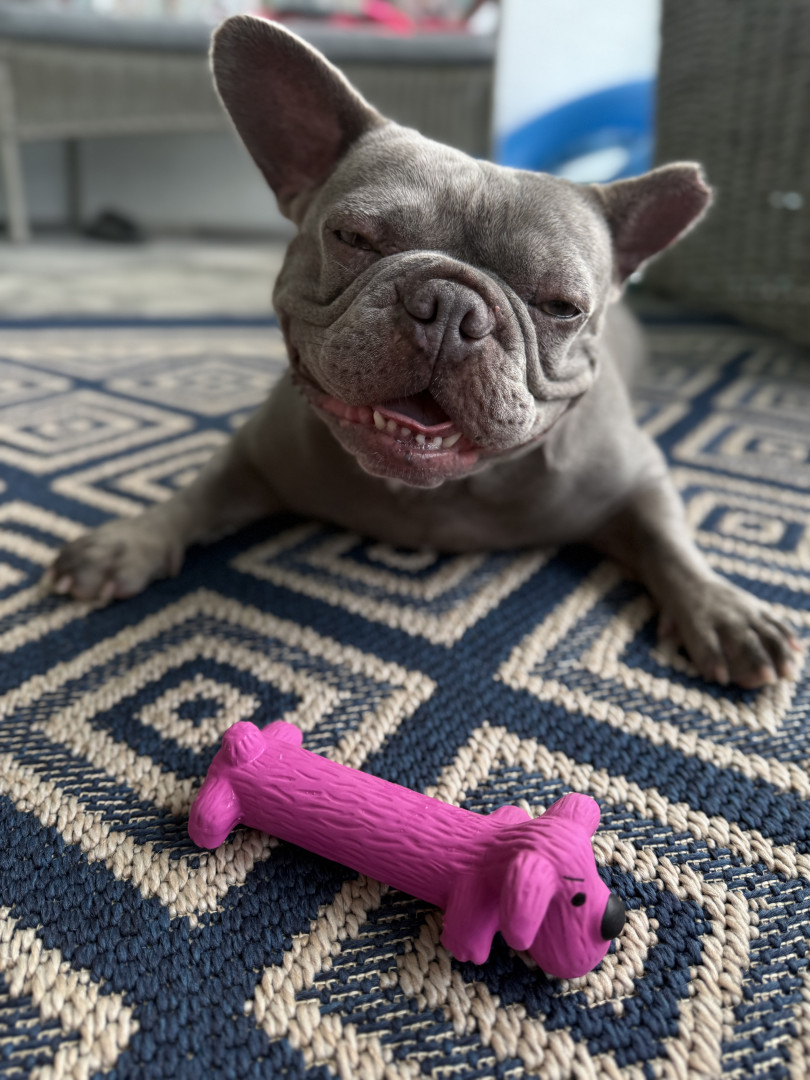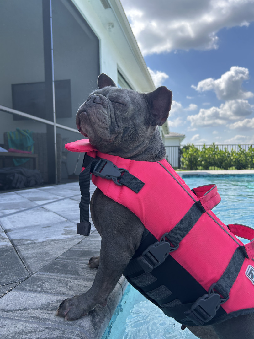 She should be America’s favorite dog because she was used for breeding but is now living her best life swimming in pools, cuddling with her parents, playing with any and all toys she wants, and a belly full of food.