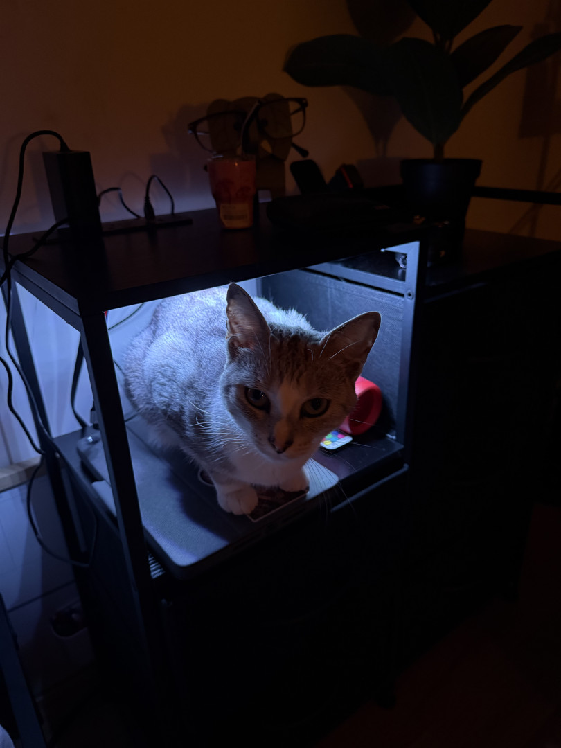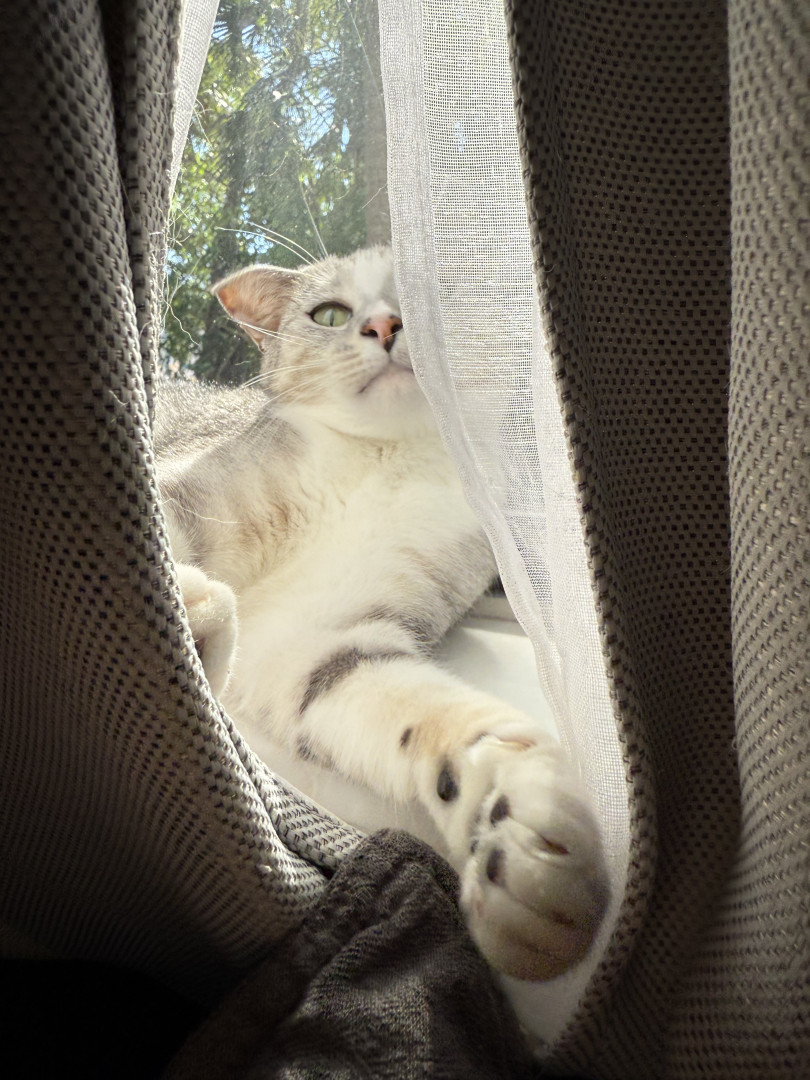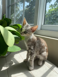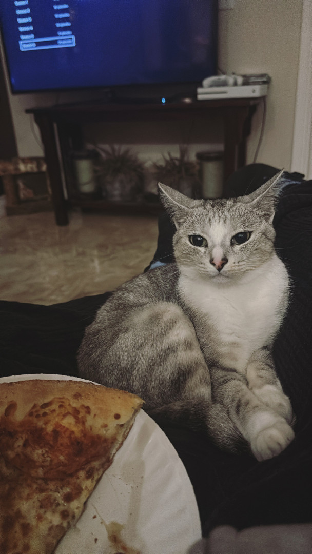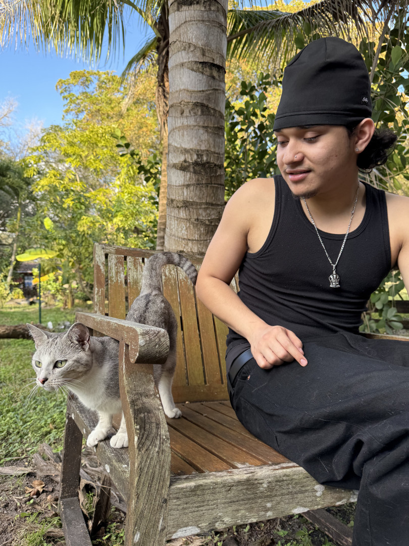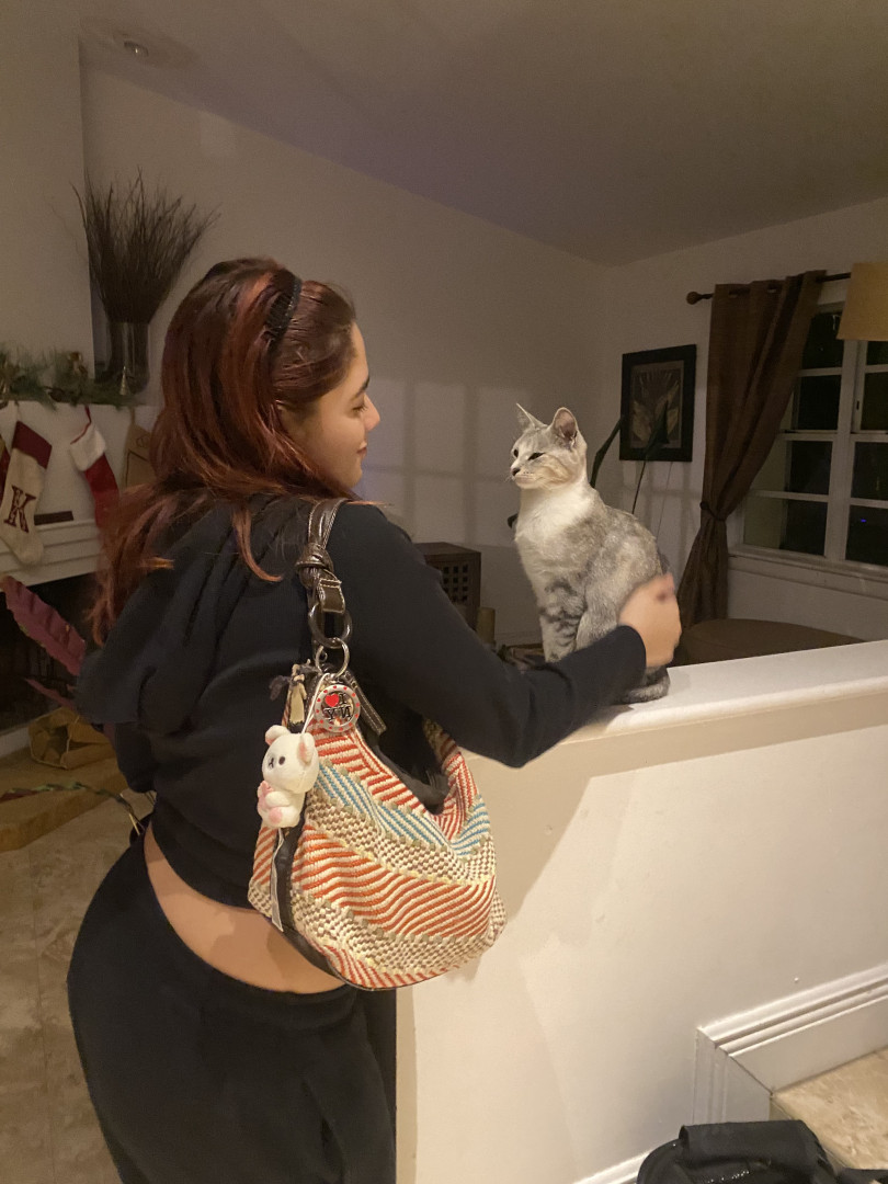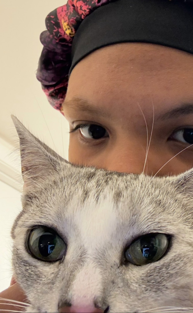Kibby’s most unique quality is undoubtedly her vocal expression and how she uses it to her advantage. When she wants something, she’ll meow manipulatively and bat her eyes. When we want to talk to her, we’ll say “I love you” in unison, and she repeats after us. Also, she’s naturally smaller (not dwarf), because she was the runt of her litter in Jamaica and lacked nutrients as a result. She is perfectly healthy, and her small size makes her much more agile as opposed to any sort of inhibition.
