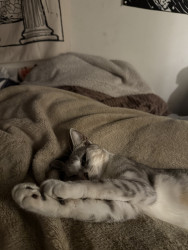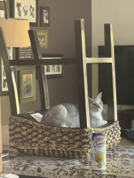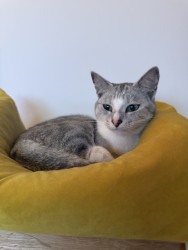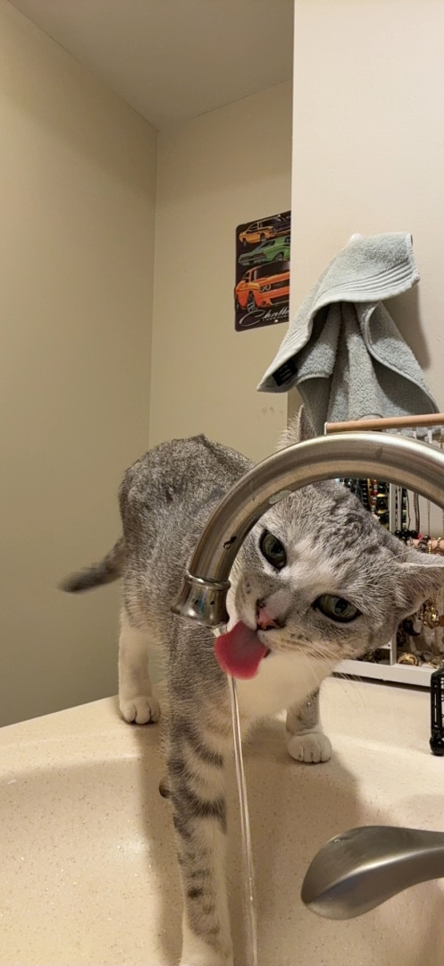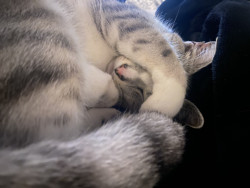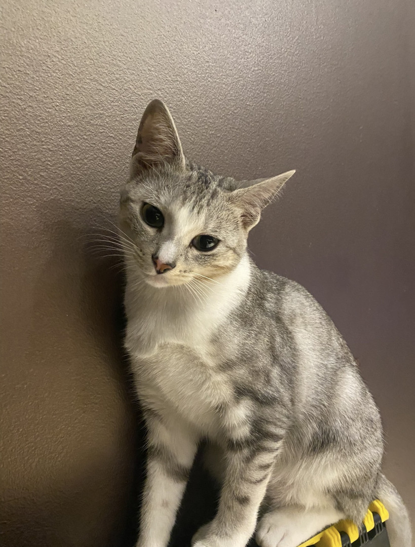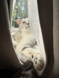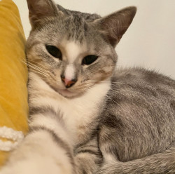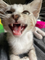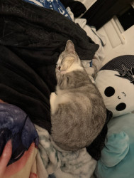 Learn MoreKibby’s favorite toy are backpacks. She’ll climb in them, bite them, and kick them. She also likes to play in swept up dirt piles. Her go-to treat is catnip and small dollops of vanilla ice cream.