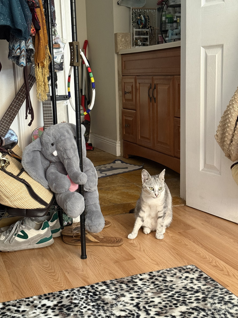 My kibby is THE star. First a Jamaican stray, we brought her to the US on a whim. Kibby is feisty, cuddly, and protective at the same time.