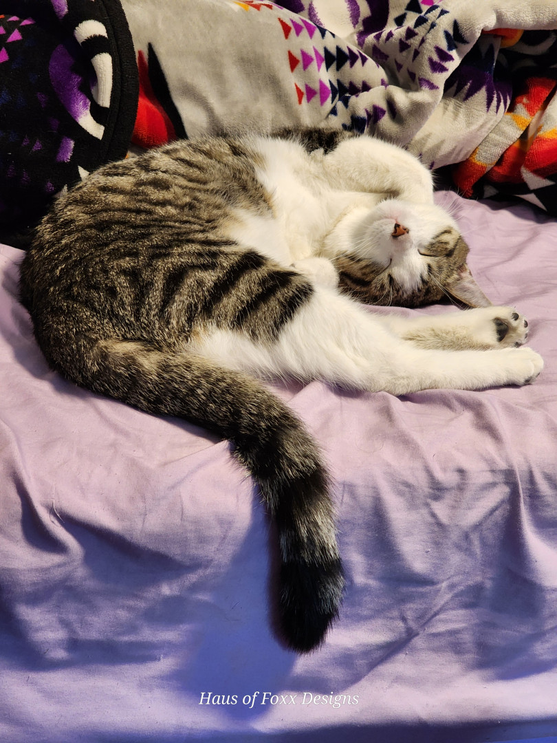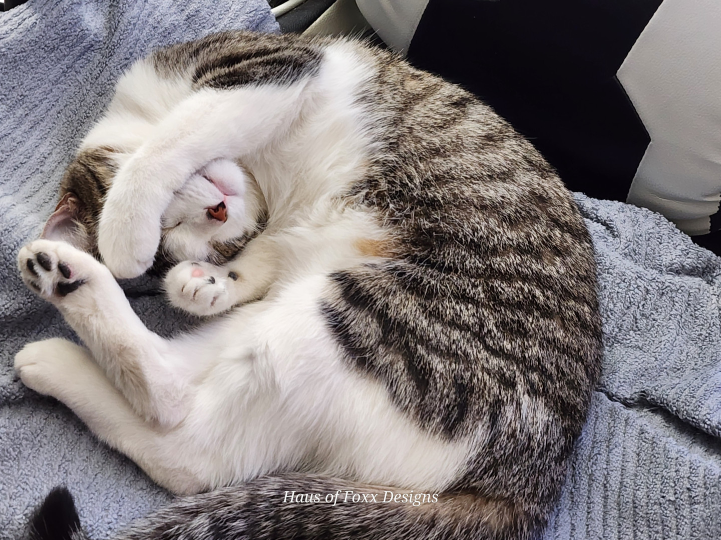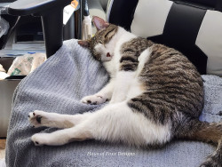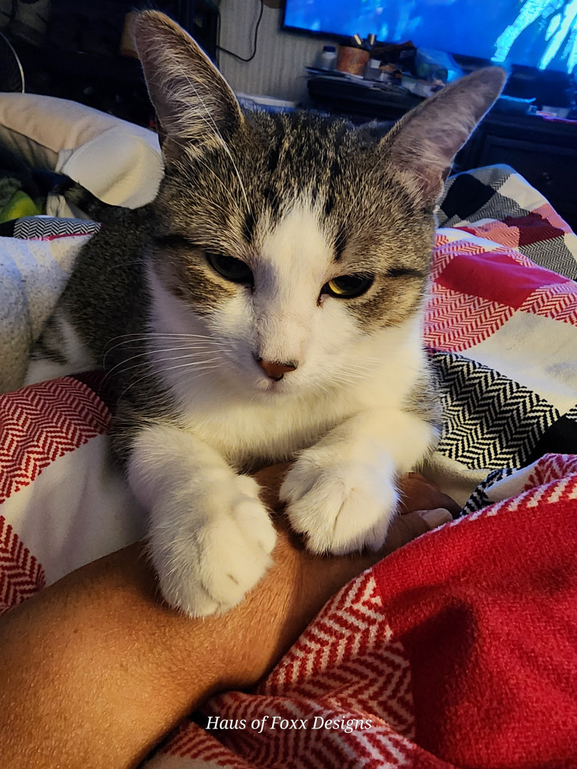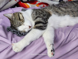 She'll lay by me and and see if she can reach to touch my face with her paw. She also likes peaking underneath the restroom door and wave with one paw from under the door.She can hear her spring toy from a mile away...lol.