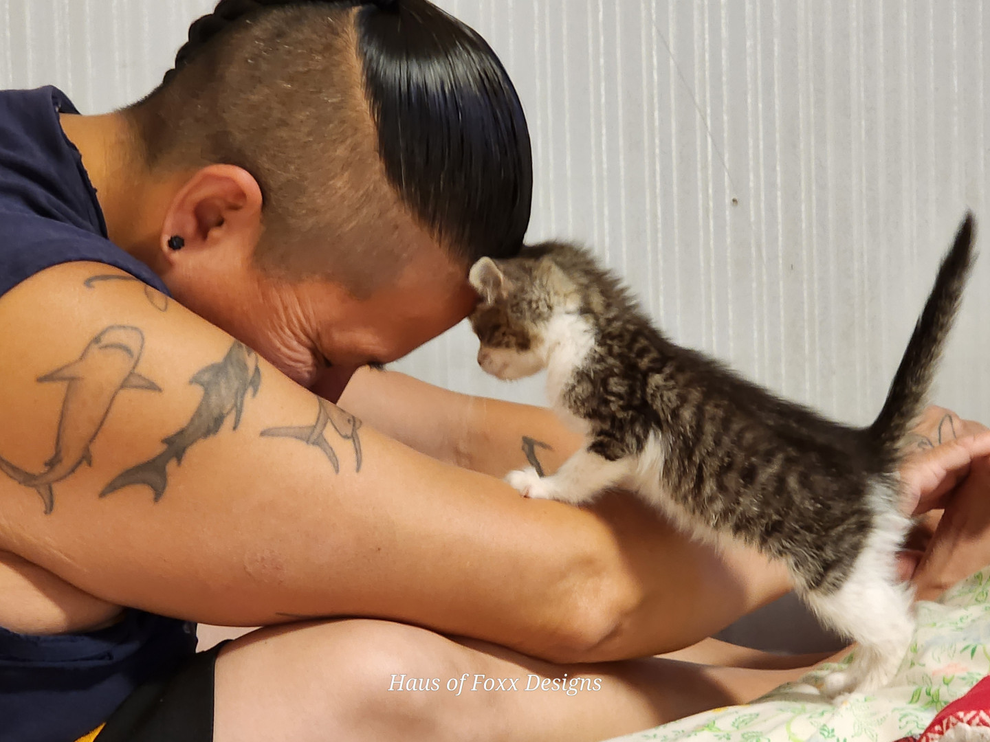 She's one of a kind. She doesn't hesitate to live life to the fullest. I found Kid on a busy highway, abandoned, sick and all alone at just 5 weeks old. She has been such a special addition to our family and she loves to the fullest everyday.
