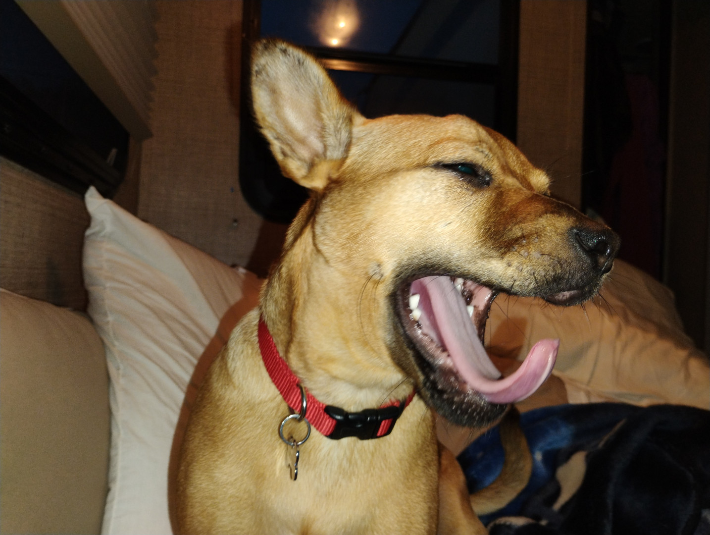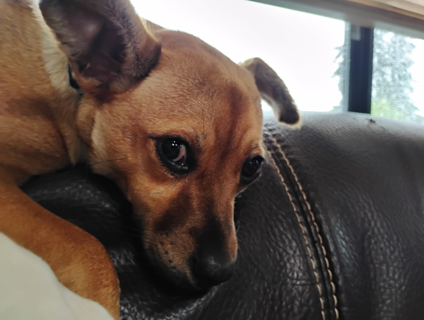 She's a rescue dog from Hawaii. A girl. My mom's care taker.