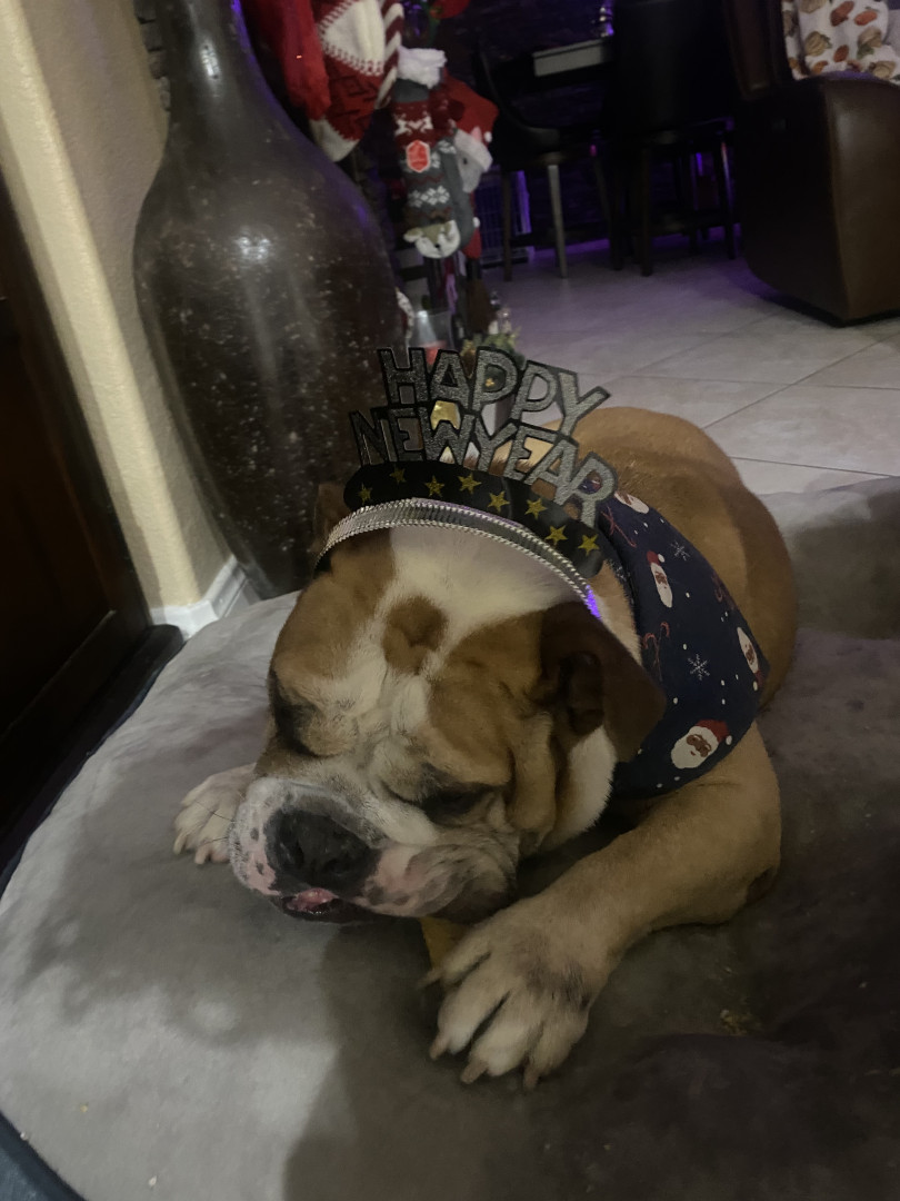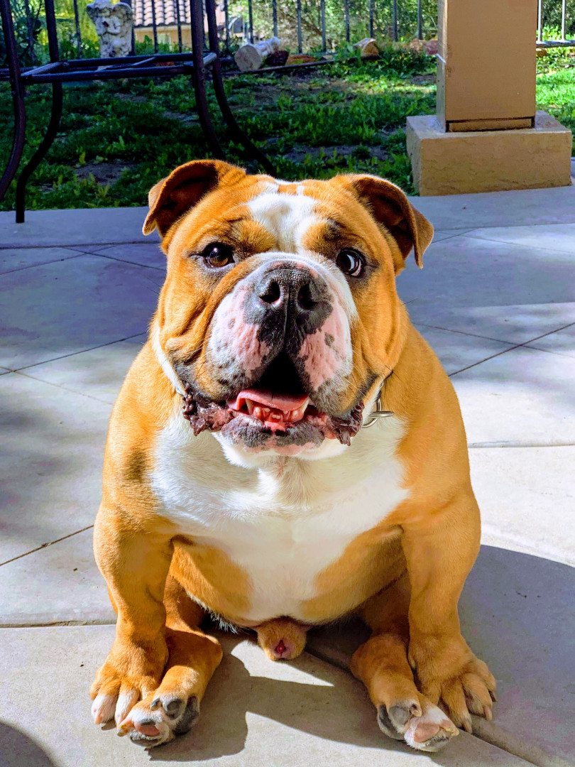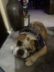 English bully dog 9 years old full of love and energy and always hungry