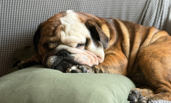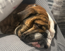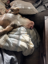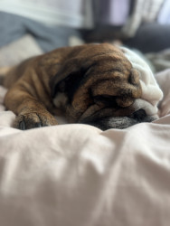 When he’s awake. (Rare occasion) Kilo is the sweetest snuggly Bullie. He loves kisses, snuggles, and food. Not a fan of fitness lol