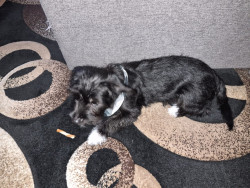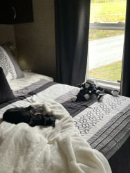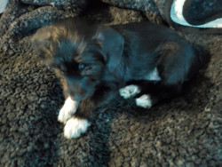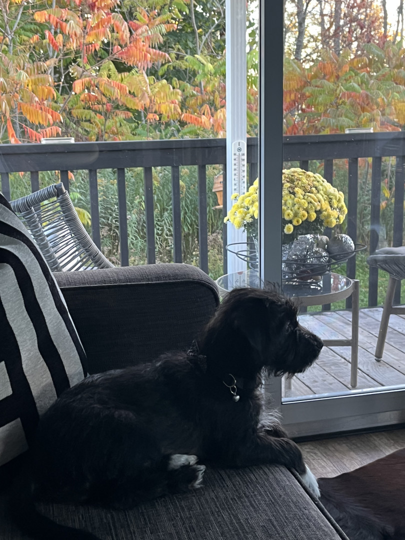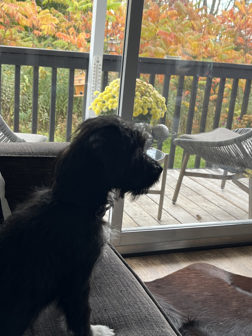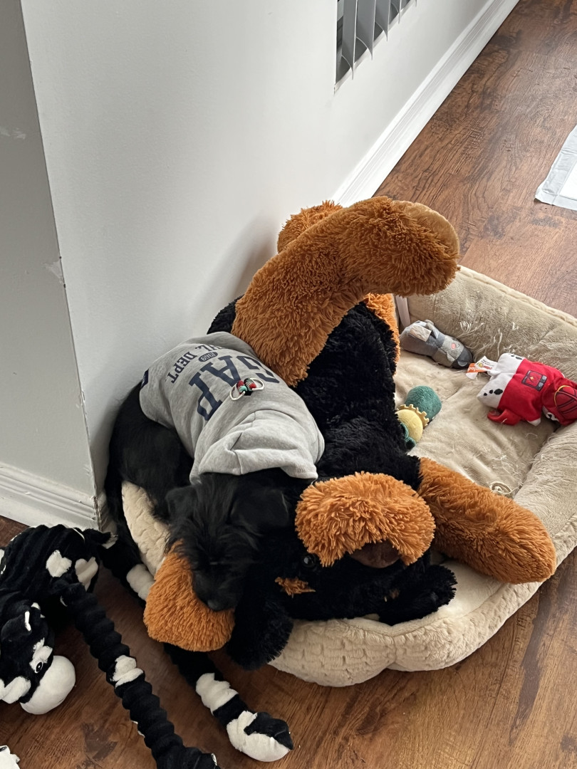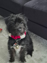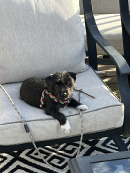 The cutest trait he has is a little squeak he makes every time he yawns. Never barks except when watching tv & sees a puppy on it. Lightning tongue & constantly giving kisses. Helps putting on his harness & coat. Loves running the halls in our condo, when it is too cold outside. Very smart, picks up new commands quickly. He’s agile & has great stamina.
