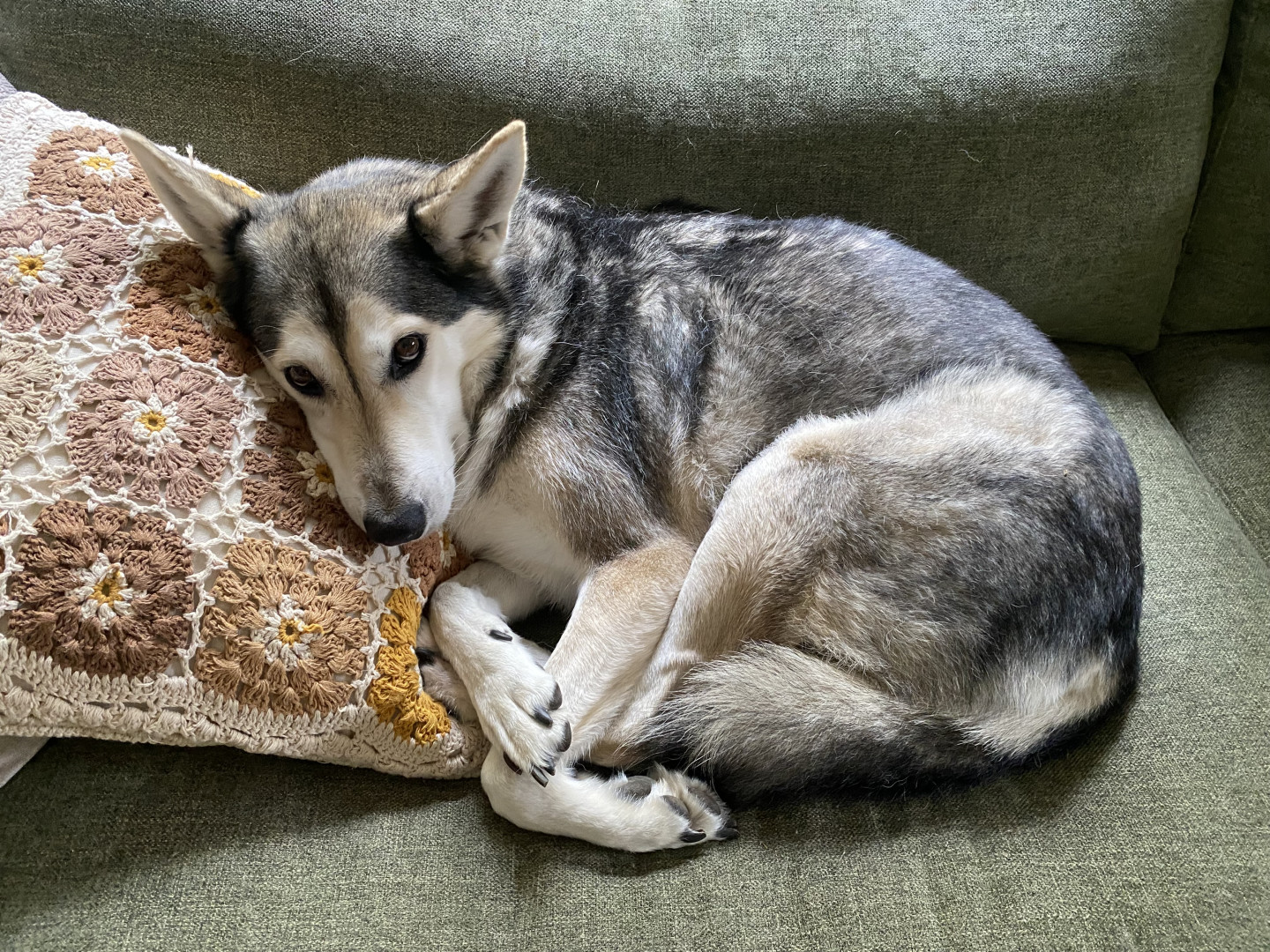 Kina’s most unique quality is her incredible emotional intelligence. This dog is tuned in! Anytime we are having a rough day or feeling under the weather she is right there with extra snuggles and love. She’s always ready to celebrate the good moments too and loves to wag along to a spontaneous living room dance party.