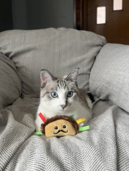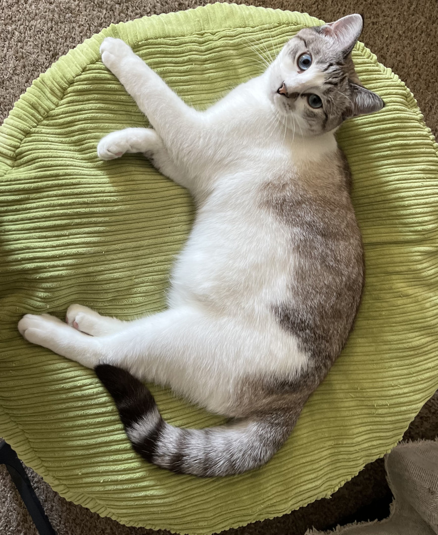 Learn MoreHe loves to lay on our green ottoman. He also has a favorite green toy that he always chases after, does funny kicks with it.