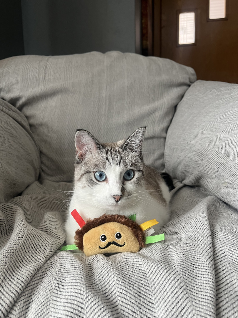 Kip is alert and curious, with big blue expressive eyes and a sleek, athletic build. He is very funny.