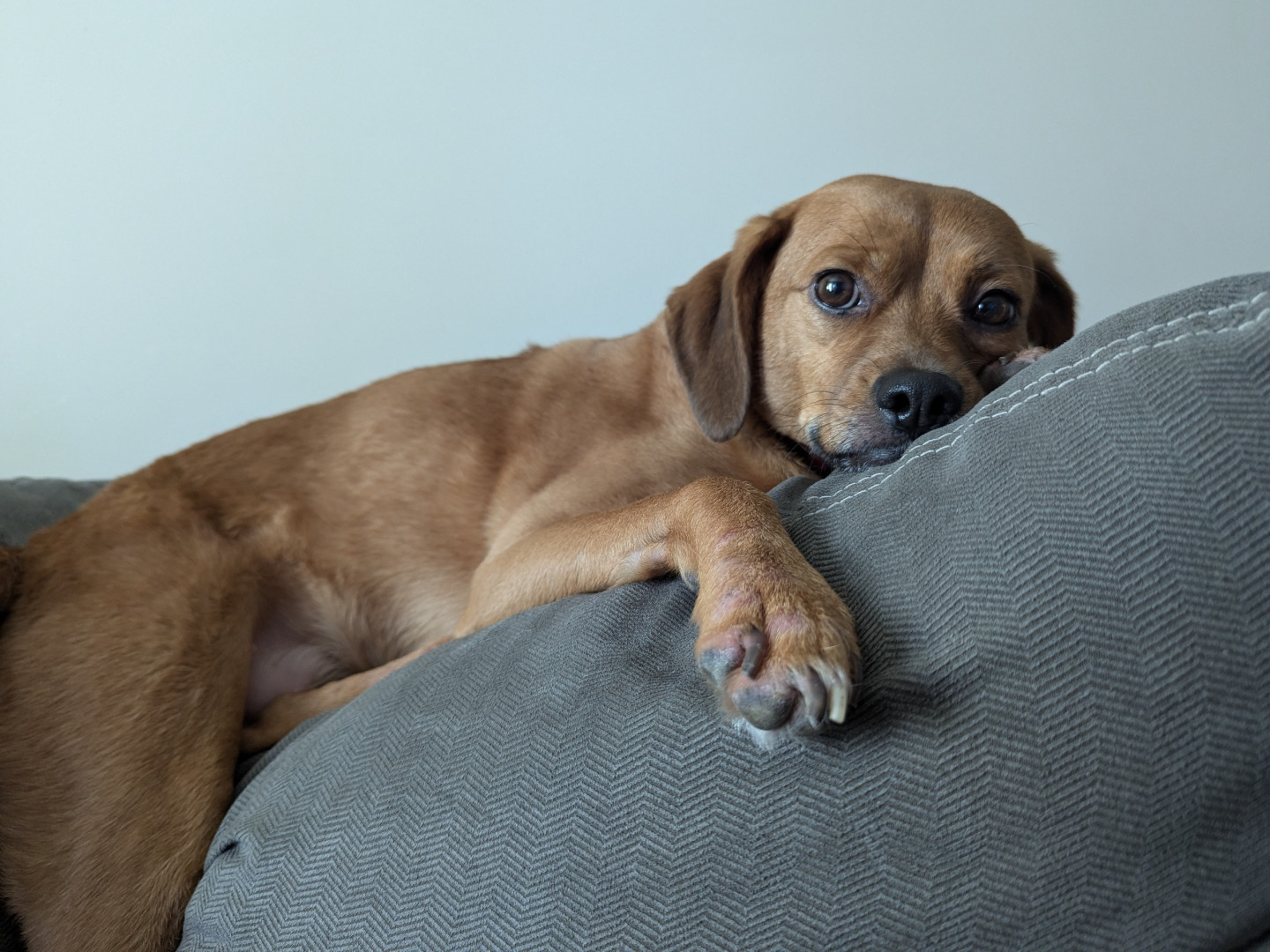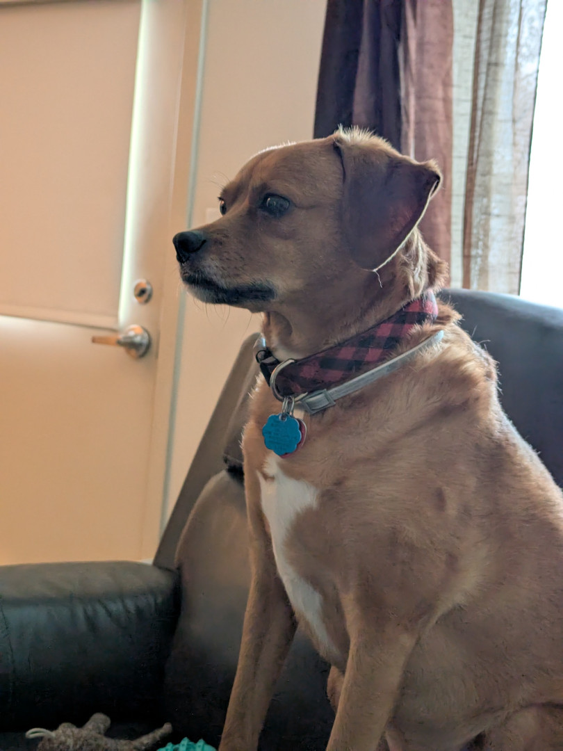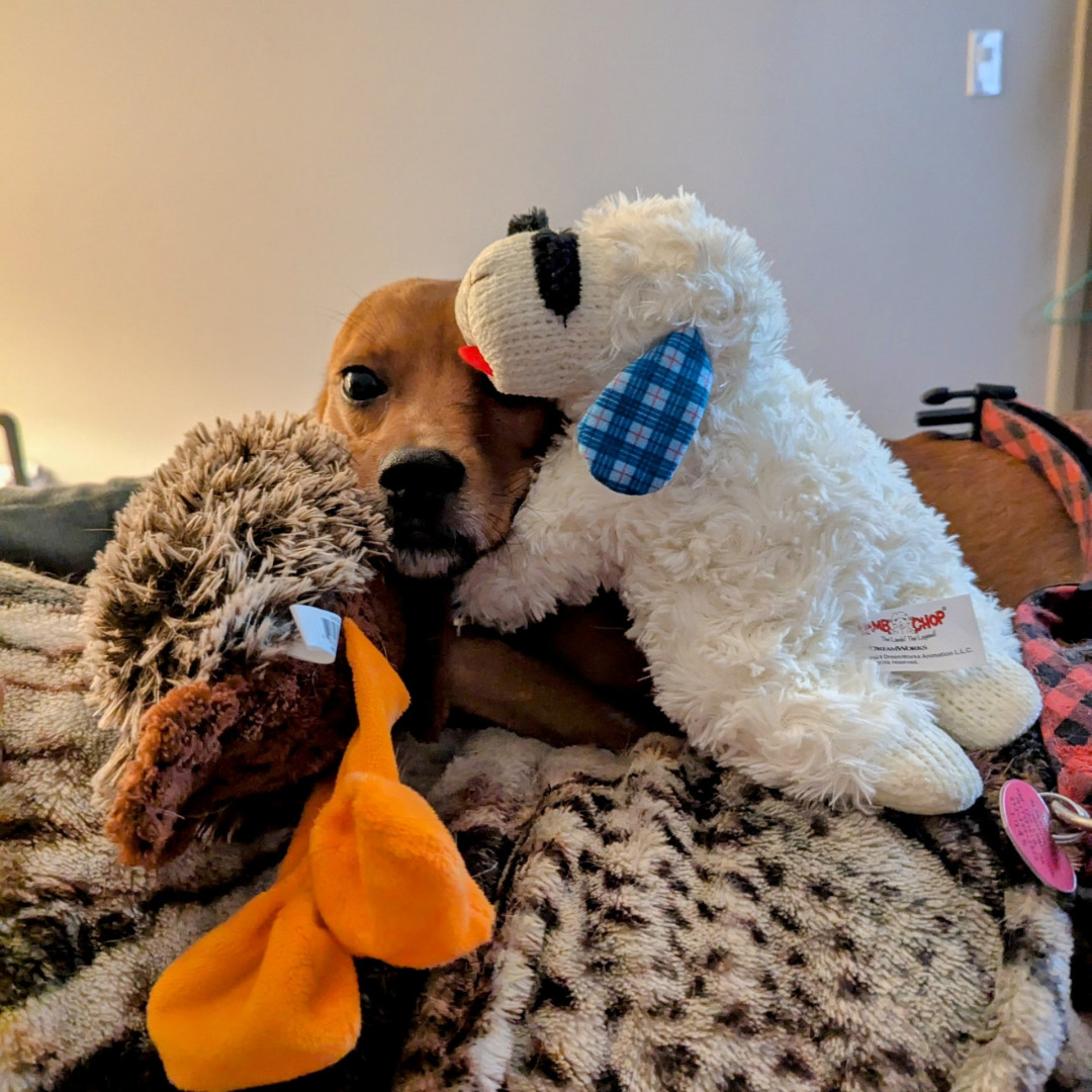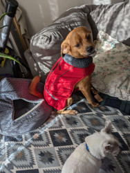 Kipper is a dog who has so much love to give everyone. If he isn't cuddling with you Wich is one of his favorite things to do, he will can hog space on a bed real easy.Even though he is younger, he is a big brother to our 19 year old Chihuahua Pablo, who literally has an old man's personality but you can find them snuggled up with each other when you least expect it. When I take kipper out people always ask to pet him or in passing tell us how cute he is.
