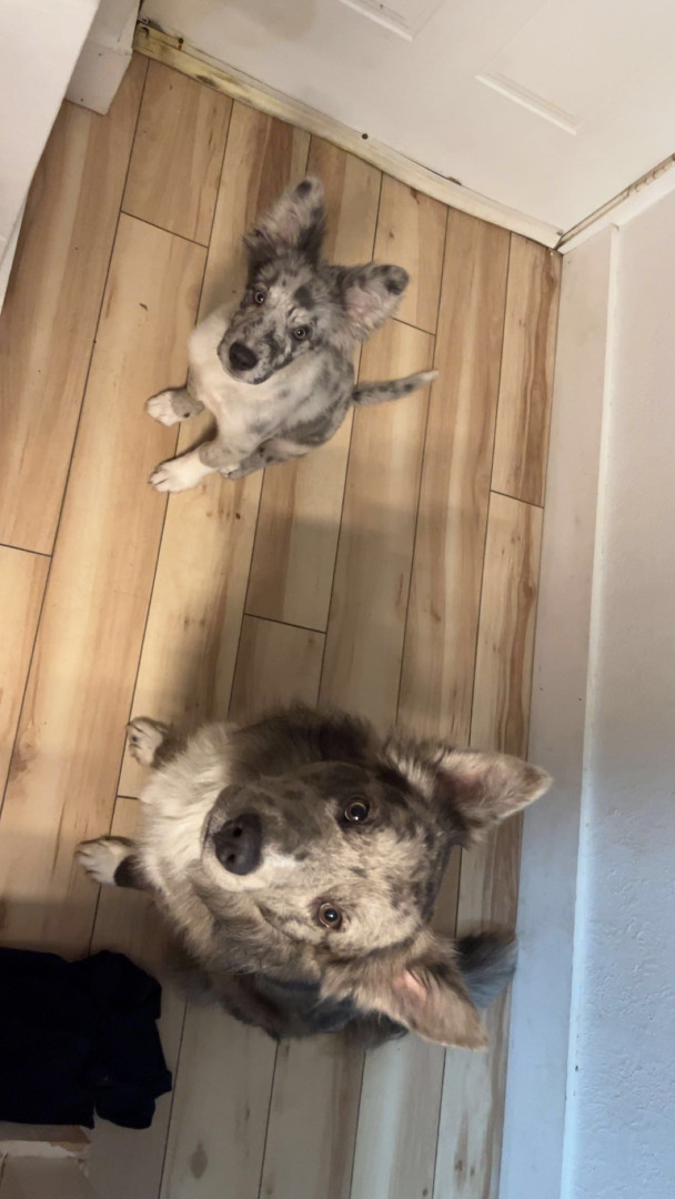 Klyd is great at climbing, Zesus is playful and gentle with smaller dogs