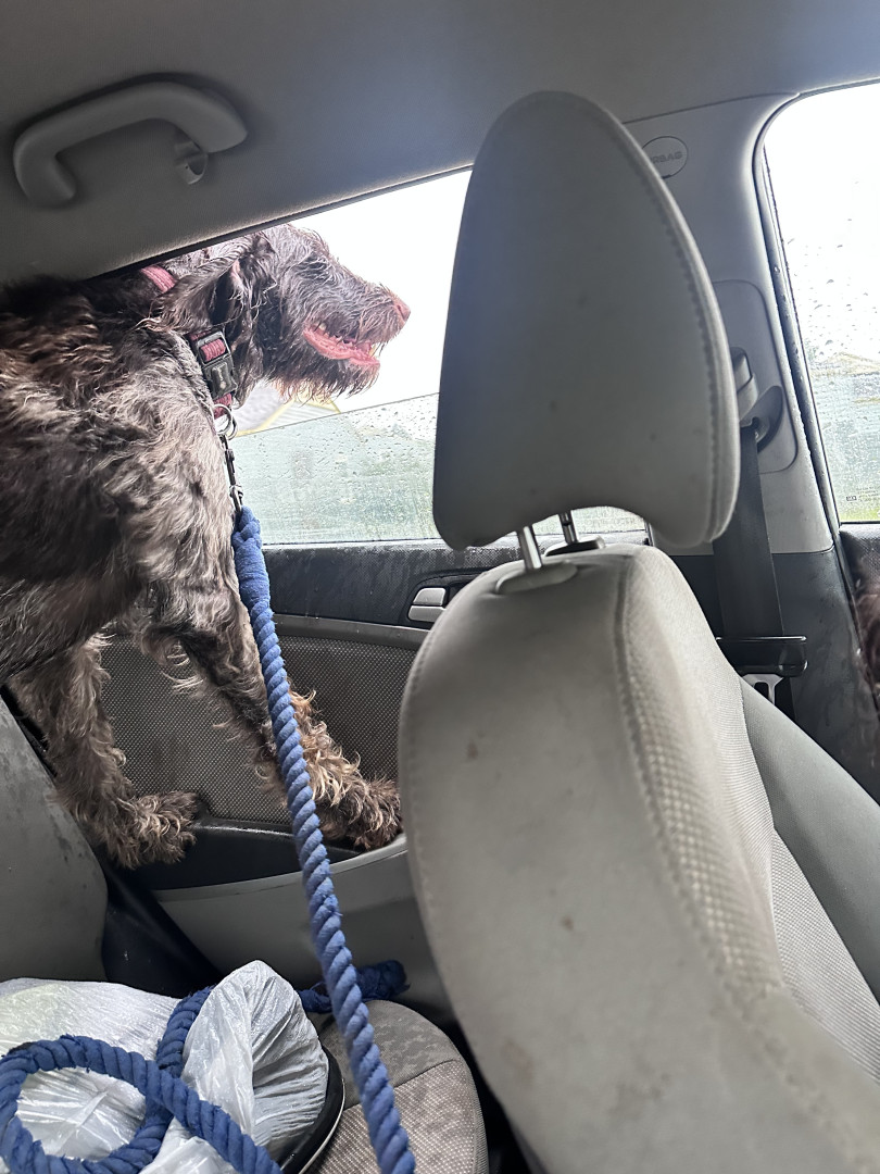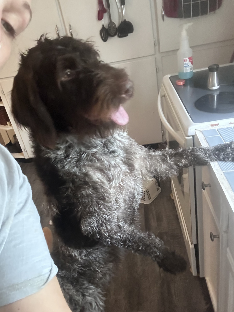 Ko-Ko is a 4year old male German Wirehaired Pointer! He is our family 's rough an tough cuddle buddy!