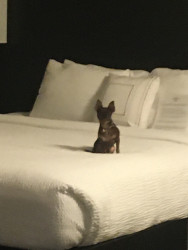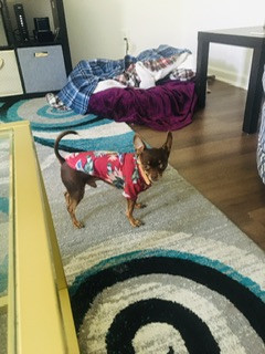 Koa is very perceptive. He knows when I’m getting ready to go somewhere so, he gets ready to go and gets in his carrier. He’s a traveler. He enjoys people, traveling, boat riding. And fashion too.
