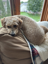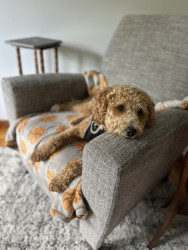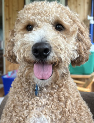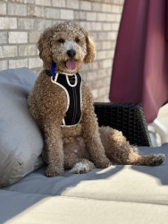 Kobe is a mini Golden Doodle and 2 years old. He loves stealing socks, dinner time, and playing with his older human brothers.
