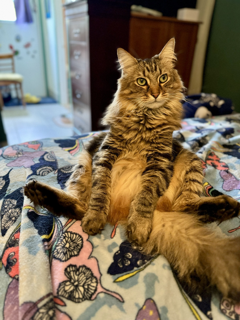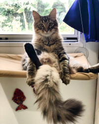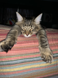 Kobe is one of the sweetest most social cats I have ever met. He grew up with dogs so he thinks he is a dog.