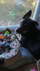 He can make you laugh even if your mad and when your sad or sick he’s right by your side and his coat kinda looks like a tuxedo and his best friend is my calico cat and he is very gentle and nurturing with babies and puppy’s