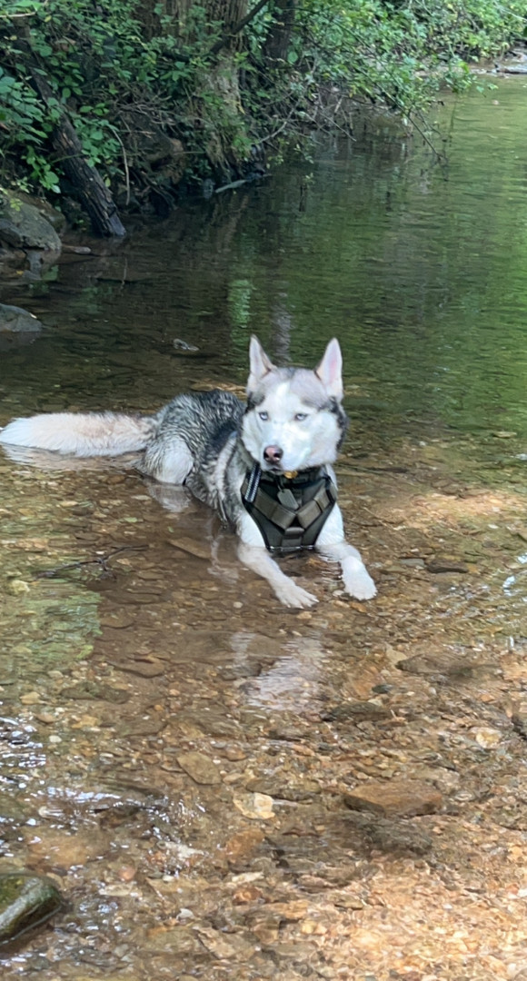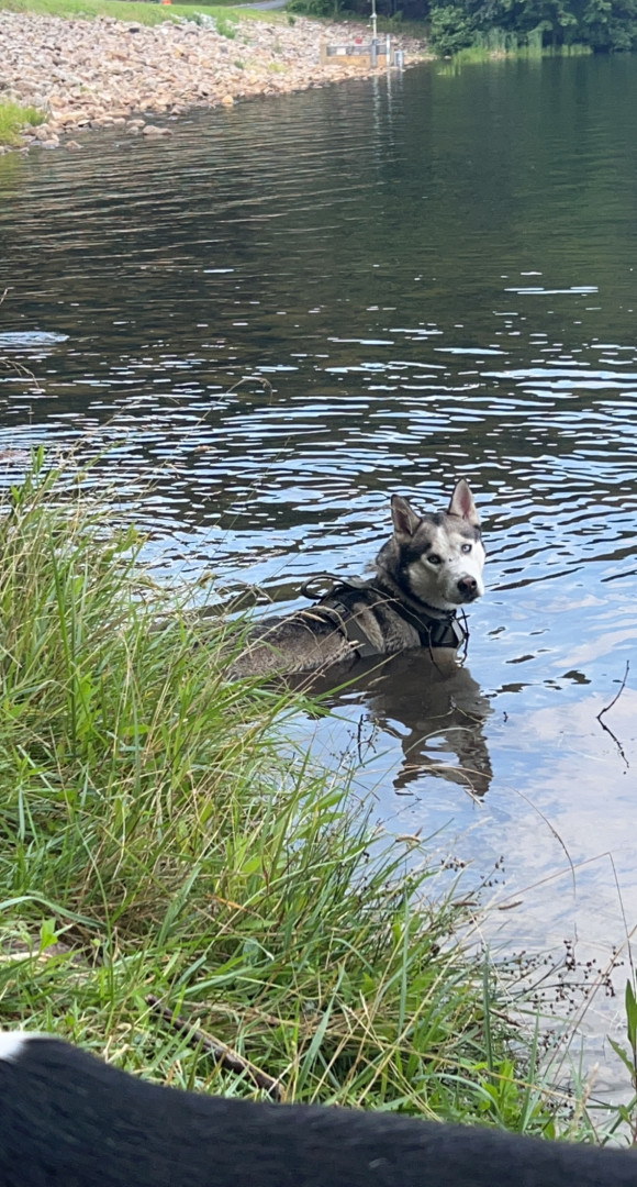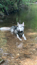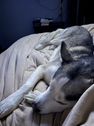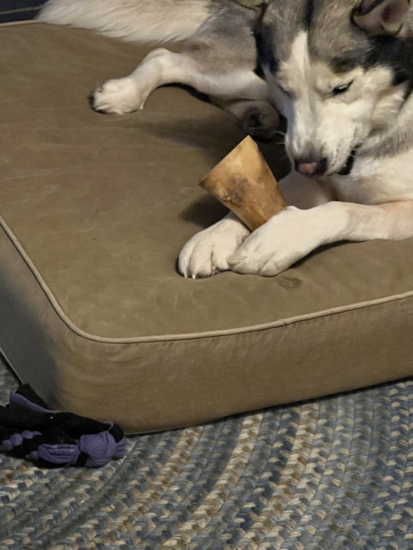 Alaskan husky who loves his bones and talks a lot.