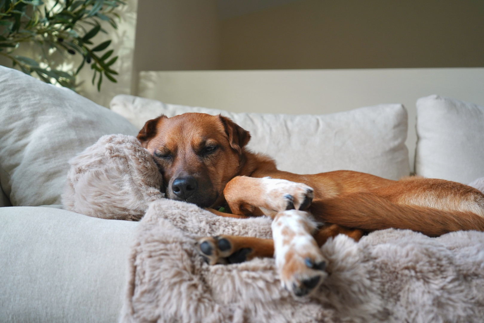 She thinks she’s a human!! She sleeps curled up with her head on our pillows, loves to go to her ‘gym’ (canine fitness equipment in our basement), and snuggles every morning before we’re allowed to get up. She’s also known for her famous paw punches - if you don’t pay attention, you might catch one!